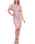 Sparkle and shine at your next event in this dress from Betsy & Adam. Featured in a flattering sheath silhouette and finished with fluttering bell sleeves.| Lined| Short bell sleeves| Zipper closure at center back| Glitter may shed during wear| Ruched details throughout| Boat neckline; Sheath silhouette