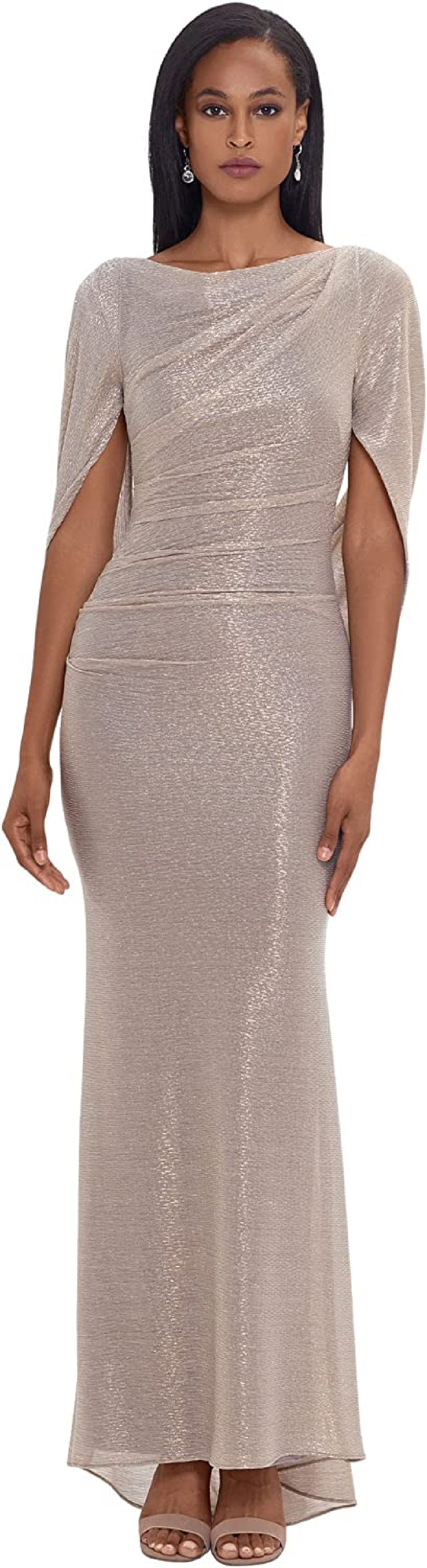 Betsy & Adam Women's Metallic Cape Gown Yellow Size 14