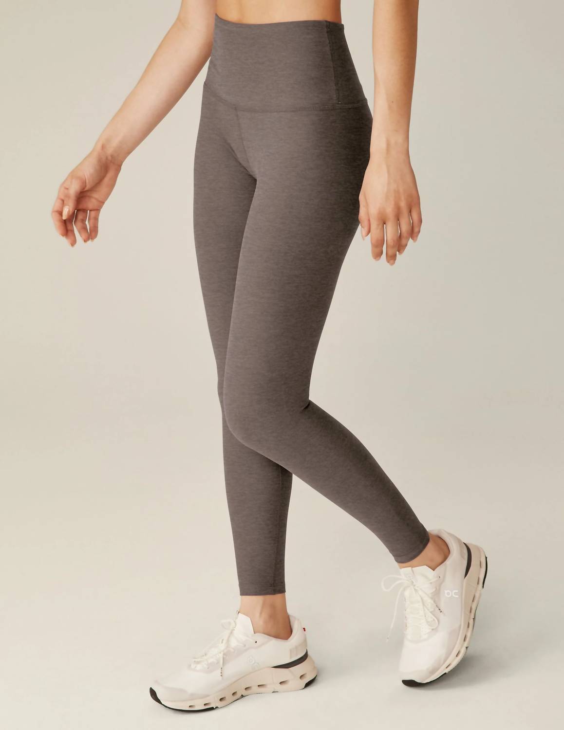 Dive into comfort with the Spacedye Caught In The Midi High Waisted Leggings by BEYOND YOGA in Soft Umber Heather. Featuring a high-rise 5-inch waistband and no outseam, these leggings are made from a buttery soft blend of 87% Polyester and 13% Elastane. The pull-on style offers supportive compression with a 24-inch inseam for a sleek silhouette. Designed with moisture-wicking and 4-way stretch in mind, they also provide UV protection and are easy to care for with machine wash and tumble dry instructions. Perfect for a summer athleisure wardrobe.