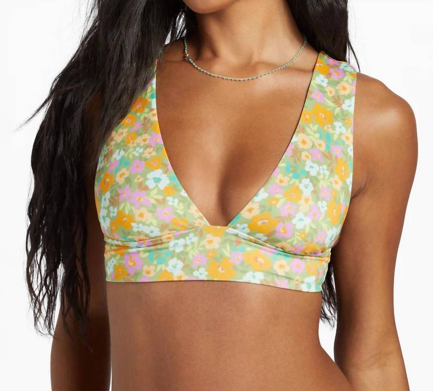 Ideal for relaxed poolside moments, this adorable swimsuit effortlessly transitions into the perfect sunset dinner outfit when paired with a flowing skirt. Dive into summer with the On The Bright Side Plunge Bikini Top by Billabong, offering both style and comfort in a vibrant multi retro floral print. This triangle swim top features thick, supportive straps and a seamless design, with a wide underband delivering full coverage. Crafted from our recycled Peach Stretch swim fabric, it provides a comfortable pullover style perfect for any beach day. Care for this patterned maximalist piece by hand washing to ensure it remains a staple in your swim collection.