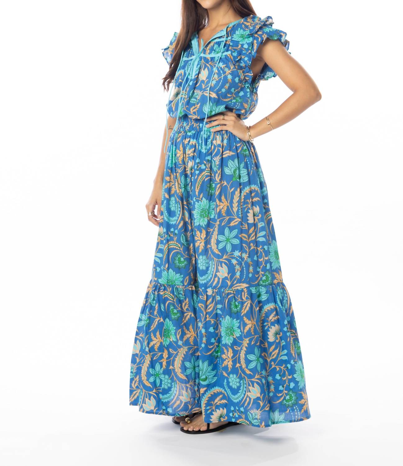 Pair this with your favorite jeans and slides for your next girls night out. Introducing the Cristi Playful Sleeves Top by Bindu, a stunning piece in bold royal blue with delightful cap sleeves and a v-neckline. This blouse is a splendid choice for vacations or boho chic summer gatherings. Closure: Pull on. Care: Wash on a cold delicate cycle, lay flat or hang dry, and low iron or steam if needed.