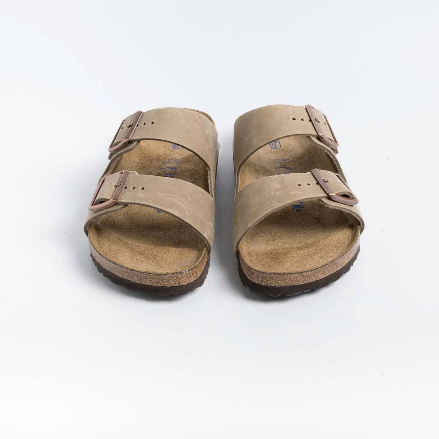 Discover the Unisex Arizona Sandal by BIRKENSTOCK, a refined choice crafted from calf leather, showcasing a sleek tobacco hue. This slip-on style features an open toe design with double buckle fastening, elegantly embossed with the brand's debossed and engraved logo. Made in Germany, the sandal sits on a flat rubber sole, ensuring comfort and durability, complemented by a branded leather insole for added luxury. Ideal for those seeking both style and comfort in their everyday footwear.
