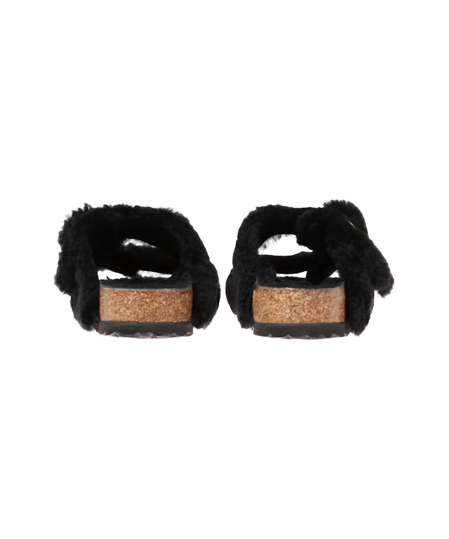 Pair these with a cozy robe and we call this loungewear luxe. Contoured Cork-Latex Footbed for Custom Support. Plush Teddy Shearling Upper for a Cozy Look. Teddy Shearling Footbed Lining for Added Comfort. Lightweight and Flexible EVA Sole. Two Adjustable Straps with Oversized Metal Pin Buckles. Made in Germany Quality Stamp.