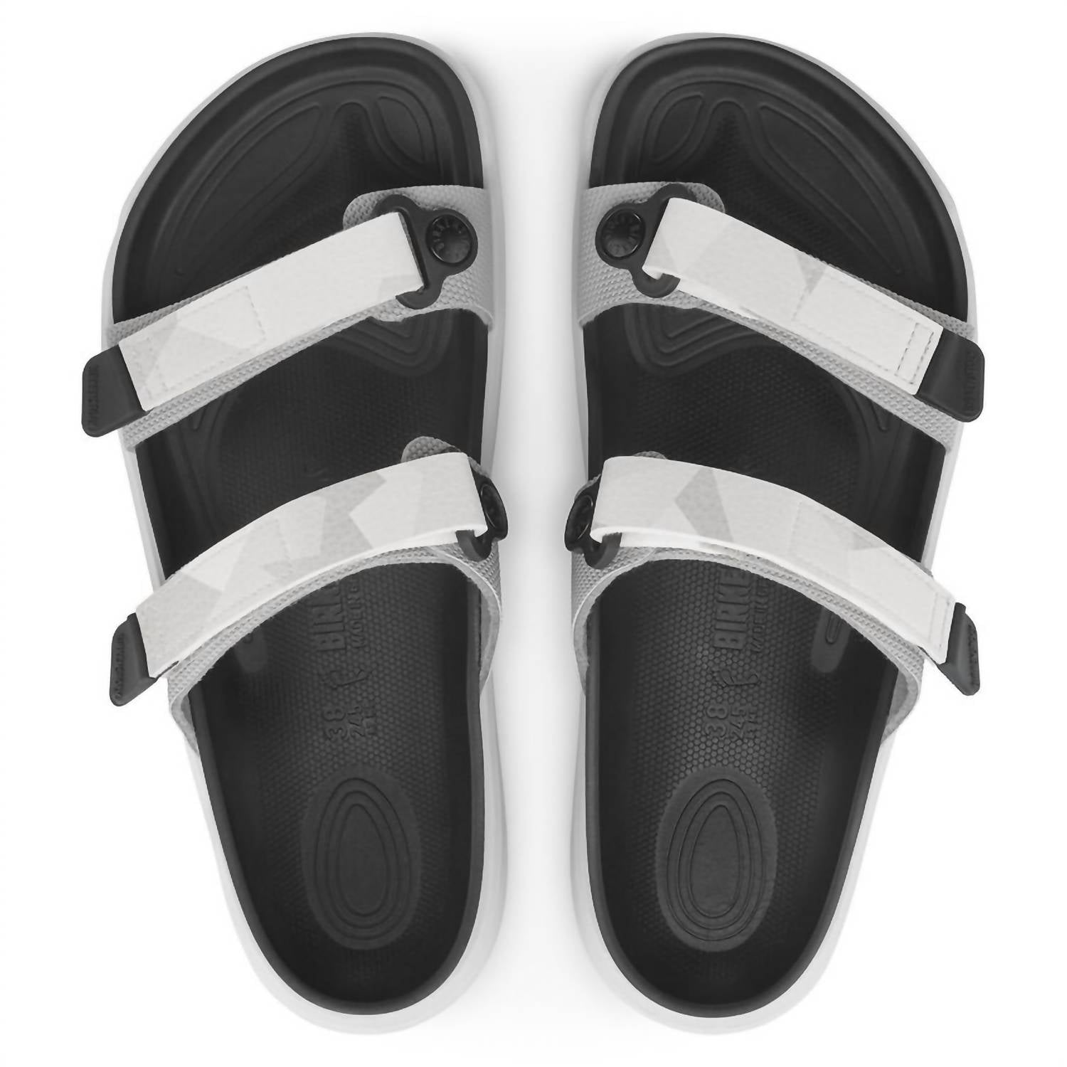 Flowy dresses, cropped pants, and even jumpsuits... this sandal works with them all! Step into the BIRKENSTOCK Women's Arizona Birkoflor Soft Footbed Sandal, designed for active and adventurous days. Made with skin-friendly and durable Birko-Flor® Futura, this sandal features a hook-and-loop closure system for a personalized fit and ultimate comfort. Built with an anatomically shaped cork-latex footbed and a light, durable polyurethane sole, it ensures flexibility and grip. Proudly made in Germany, this sandal in Desert Soil Geo Snow is perfect for those who demand both style and comfort.