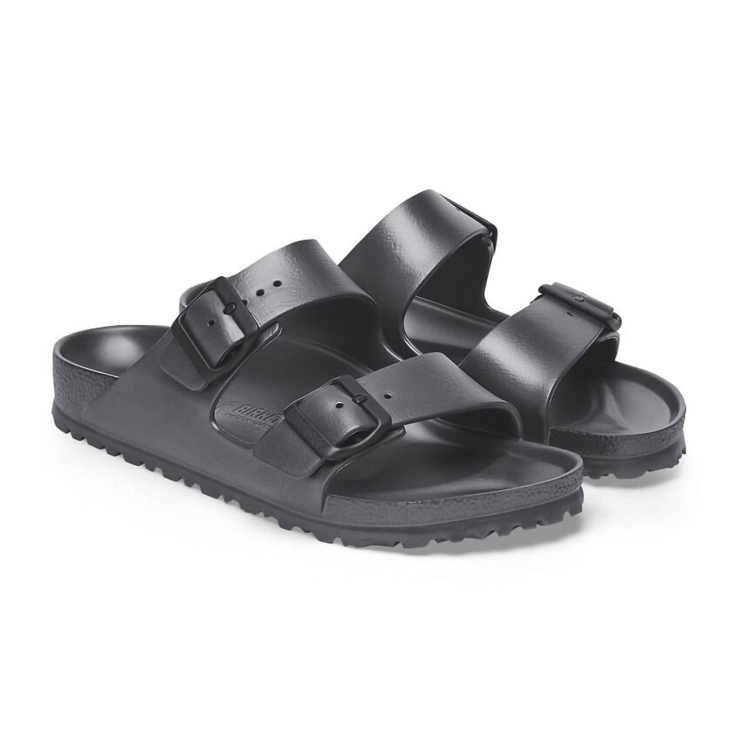 Classicly cute and all-day-wearable. We love this sandal. Introducing the Women's Arizona BS Leather Sandals by BIRKENSTOCK, a testament to exquisite craftsmanship and comfort. These sandals feature an elegant design, with an upper and footbed lining made of soft natural leather. The anatomically shaped cork-latex footbed is fully covered with smooth leather, and the EVA sole ensures durability. Complete with two individually adjustable metal pin buckle straps, this pair is proudly made in Germany.