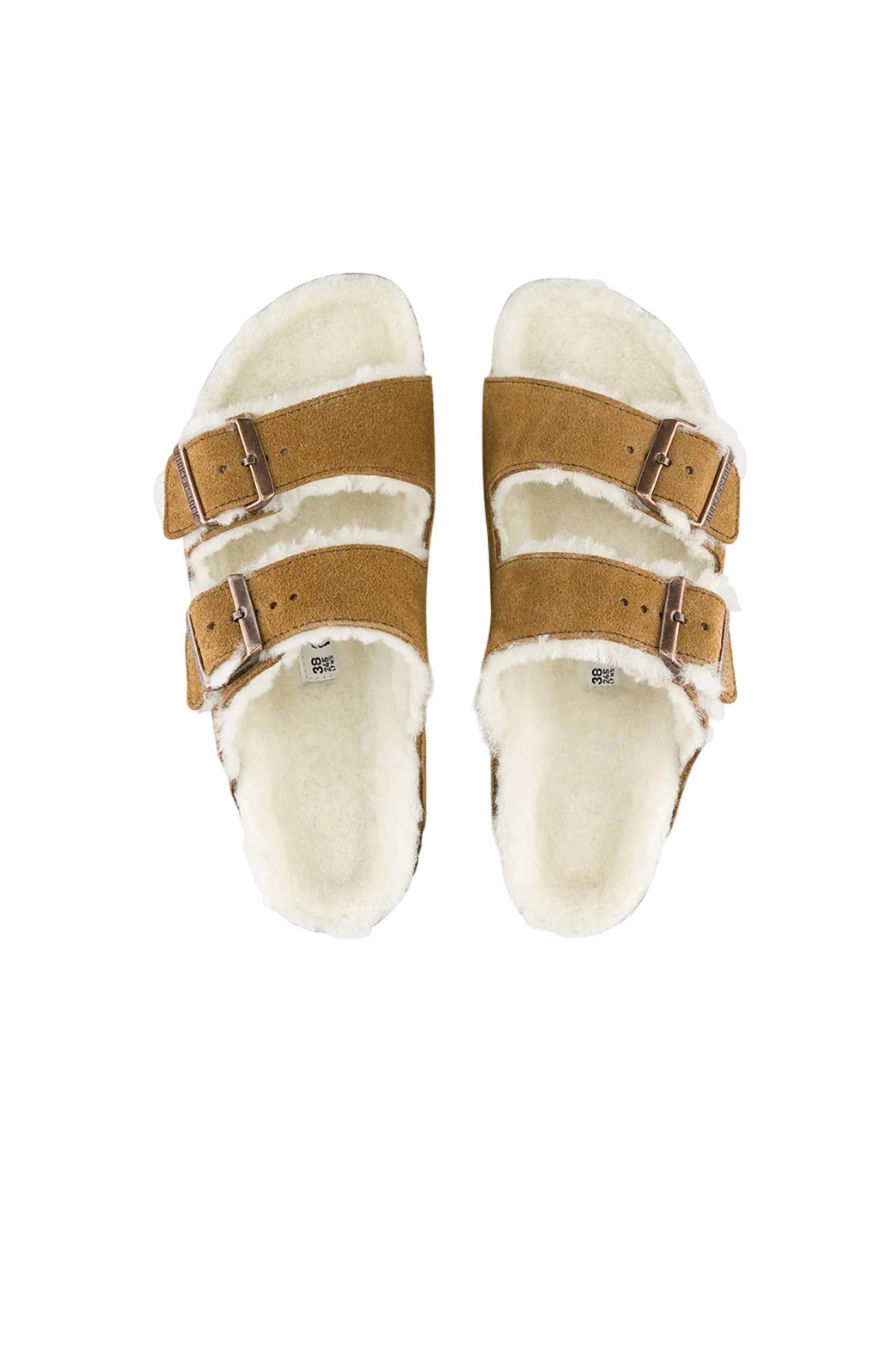 Classicly cute and all-day-wearable. We love this sandal. Classic suede lends a velvety feel that continues on the inside. The style is fully lined in genuine shearling, right down to the original contoured footbed. A soft, supportive landing every time. Designed with two shearling-lined straps with metal pin buckles. Made in Germany.