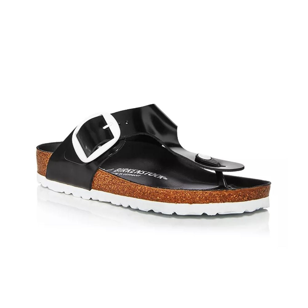 150TH Anniversary Exclusive;Classic and versatile| the celebrity-adored Birkenstock thong sandals are everywhere this resort season| but you can only find this one-of-a-kind| high-gloss black version with a white buckle and sole right here|Features;