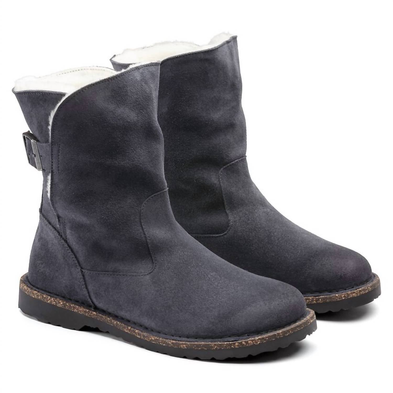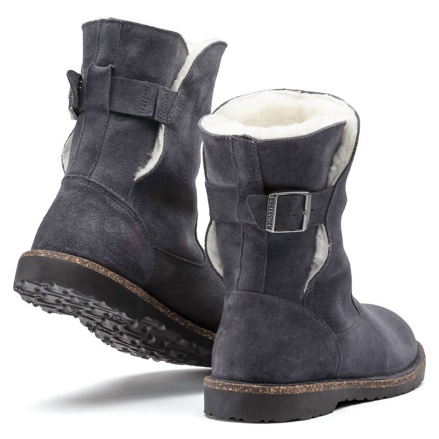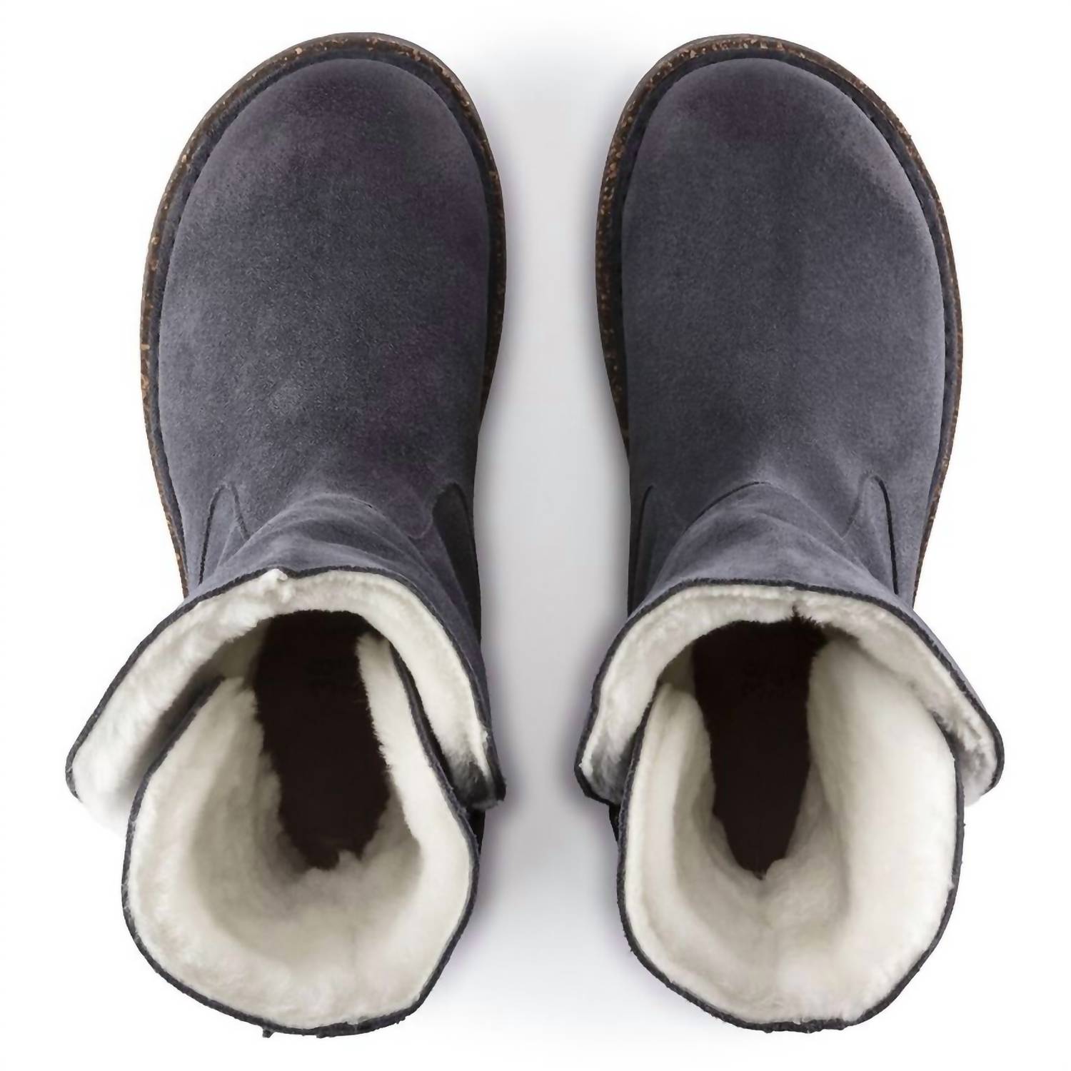 Say hello to the perfect, most versatile boot. The ankle height makes this style easily transition from day to night. Wear them with your favorite skinny jeans and tee for a more laid back look, or pair them with your favorite mini dress and jacket for a night out on the town. Meet the BIRKENSTOCK Uppsala, a cozy mid-high boot perfect for chilly days. Featuring a warm genuine shearling lining and an upper crafted from especially soft suede, this boot combines style and comfort effortlessly. The durable sole is made of TR rubber for enhanced grip. Country of Origin: Portugal.