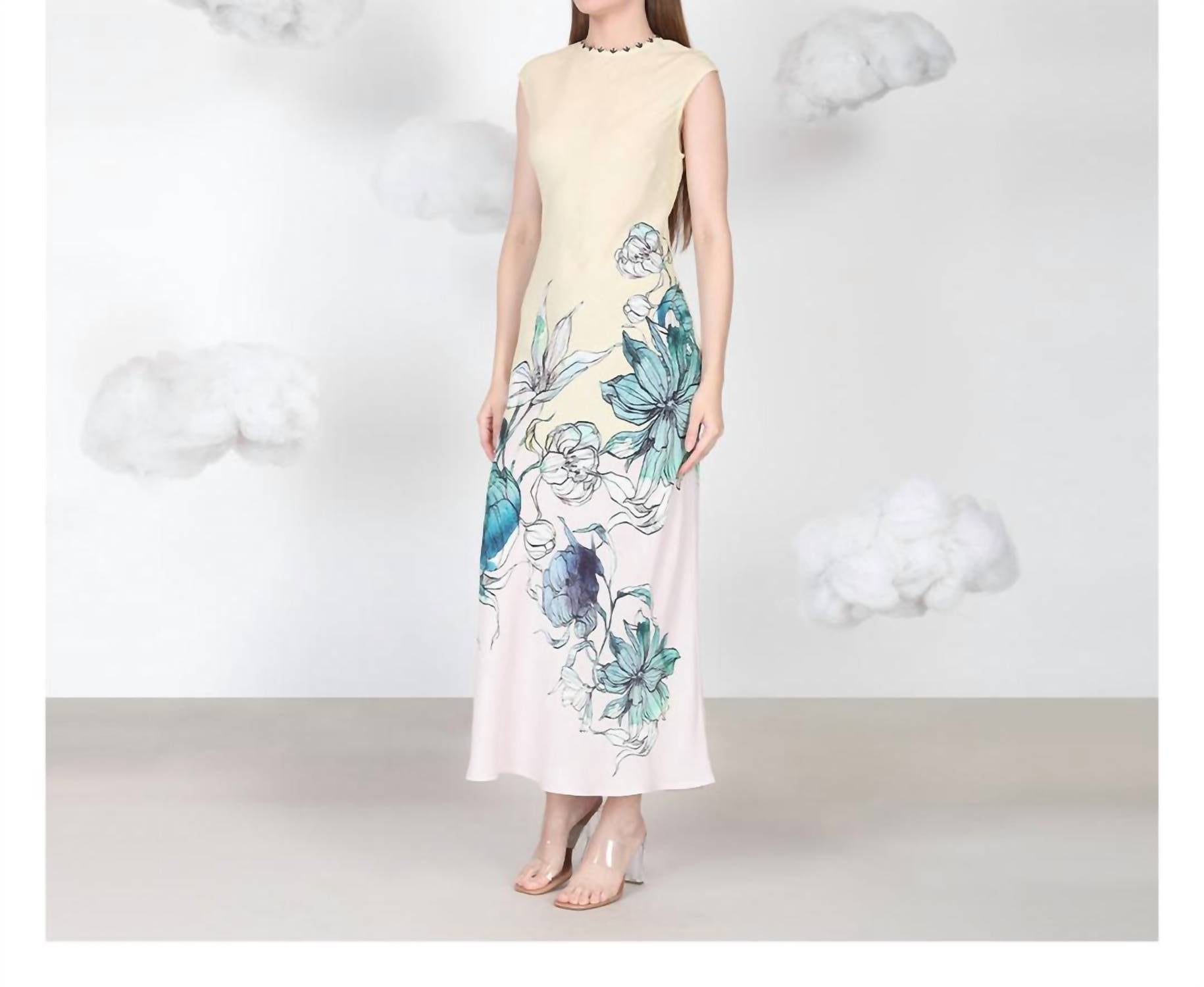 Style this maxi with your favorite statement necklace and sandals for the perfect look. Elevate your wardrobe with the Charleigh Dress by -bl^nk-, a sleeveless maxi designed to make a statement in ivory. Crafted from 100% viscose, this elegant piece showcases a crewneck and floral pattern to embody spring's romance. Its sheath silhouette hugs the figure, draping gracefully to flatter every curve. This dress is perfect for weddings and Mother's Day celebrations, and its delicate nature requires dry cleaning to maintain its timeless allure.