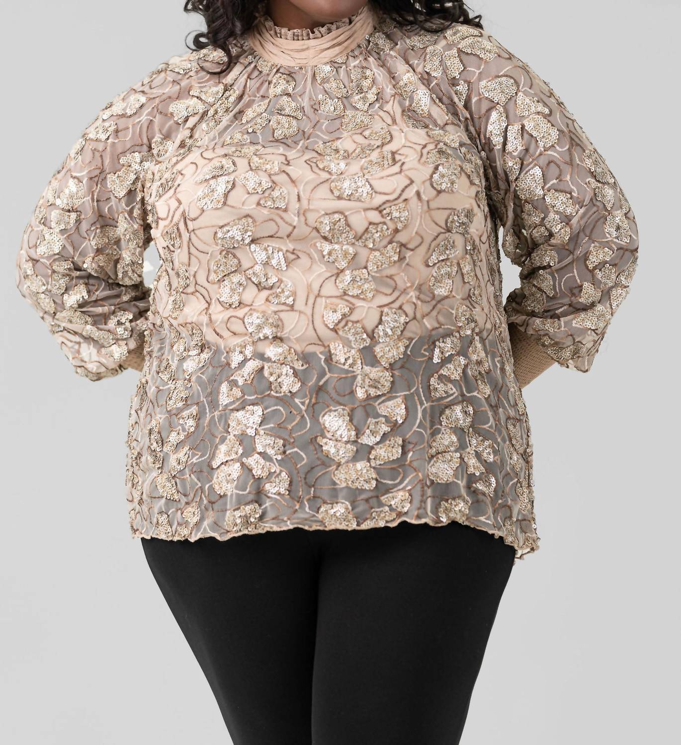 A timeless blouse that will never go out of style. Introducing the Finja Top With Camisole by -bl^nk-, an exquisite choice for plus size fashion in Cafe Cream. Crafted from luxurious viscose, this long-sleeve top features a textured pattern with frill detailing at the mockneck and cuffs, offering a unique style perfect for evening events or holiday gatherings. The convenient pull-on closure ensures easy wear, while maintaining an elegant silhouette. Care is simple with hand wash and line dry instructions, making it a wonderful addition to your fall wardrobe.