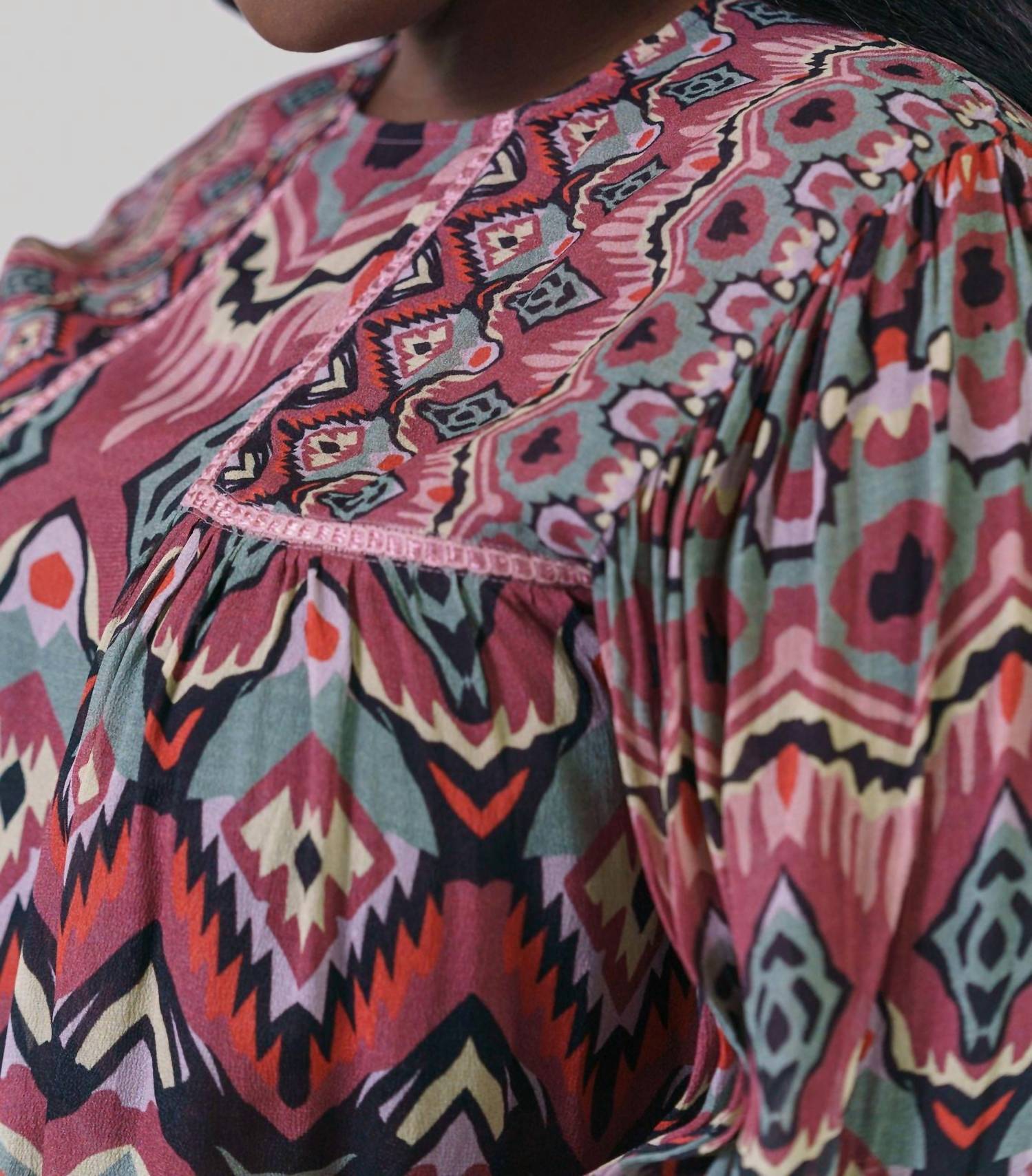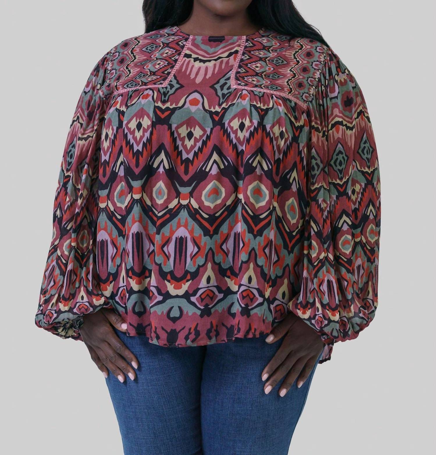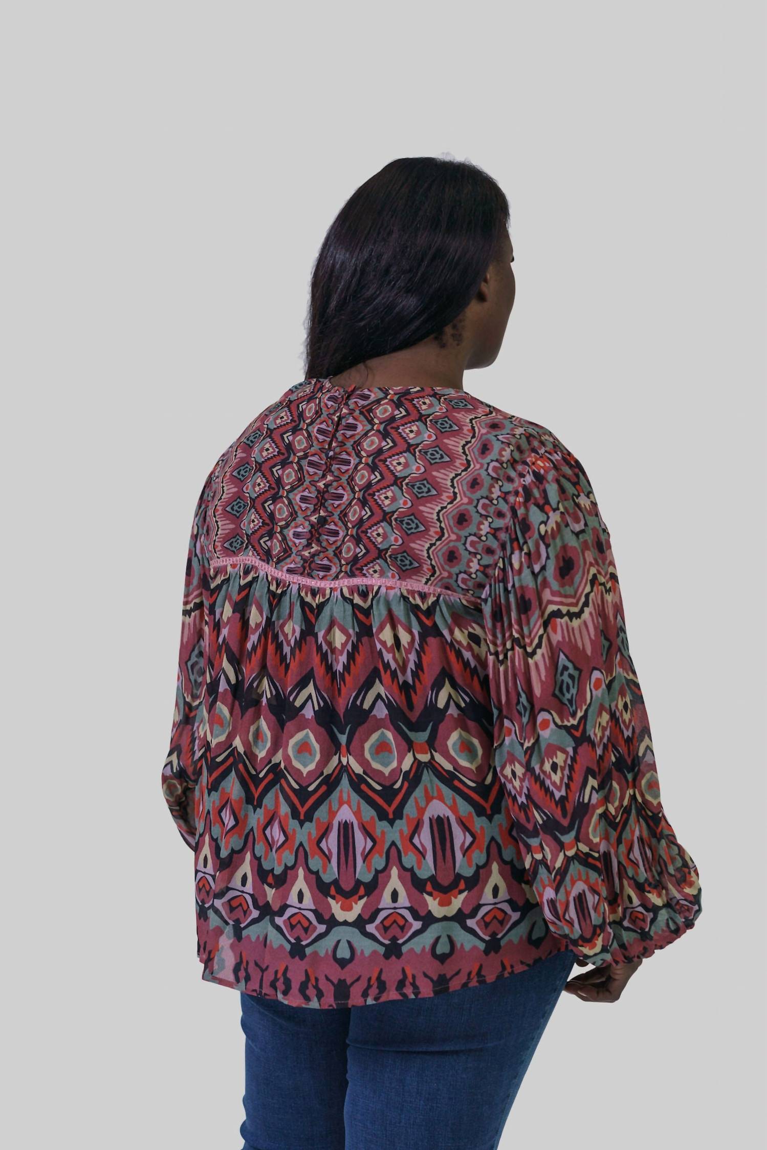 A versatile blouse that works from desk to dinner! Introducing the Tiara Top by -bl^nk-, a standout piece in a captivating geo print designed to elevate your style. This blouse features on-trend volume long sleeves and a chic crewneck, perfectly tailored for a summer dinner party. Crafted from a luxurious blend of 85% Viscose, 10% Nylon, and 5% Lurex, it offers a comfortable and stylish fit. Closure: Zip closure. Care: Dry clean only.