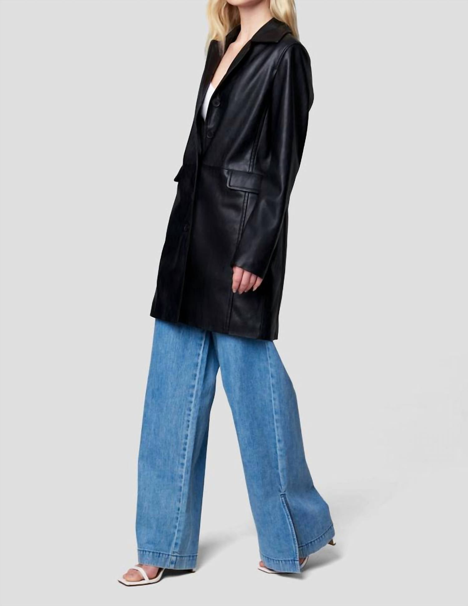 A timeless classic. You'll be reaching for this trench every season. Discover the Turning Point Trench by BLANKNYC, a sophisticated addition to any fall wardrobe. Crafted with long sleeves in solid black vegan leather, this stylish trench coat is designed for the modern woman. Composition includes a shell made of 55% polyurethane and 45% polyester, while the lining features 97% polyester and 3% spandex. With a button closure and practical pockets, this piece effortlessly combines style with functionality, ideal for travel or Thanksgiving gatherings.