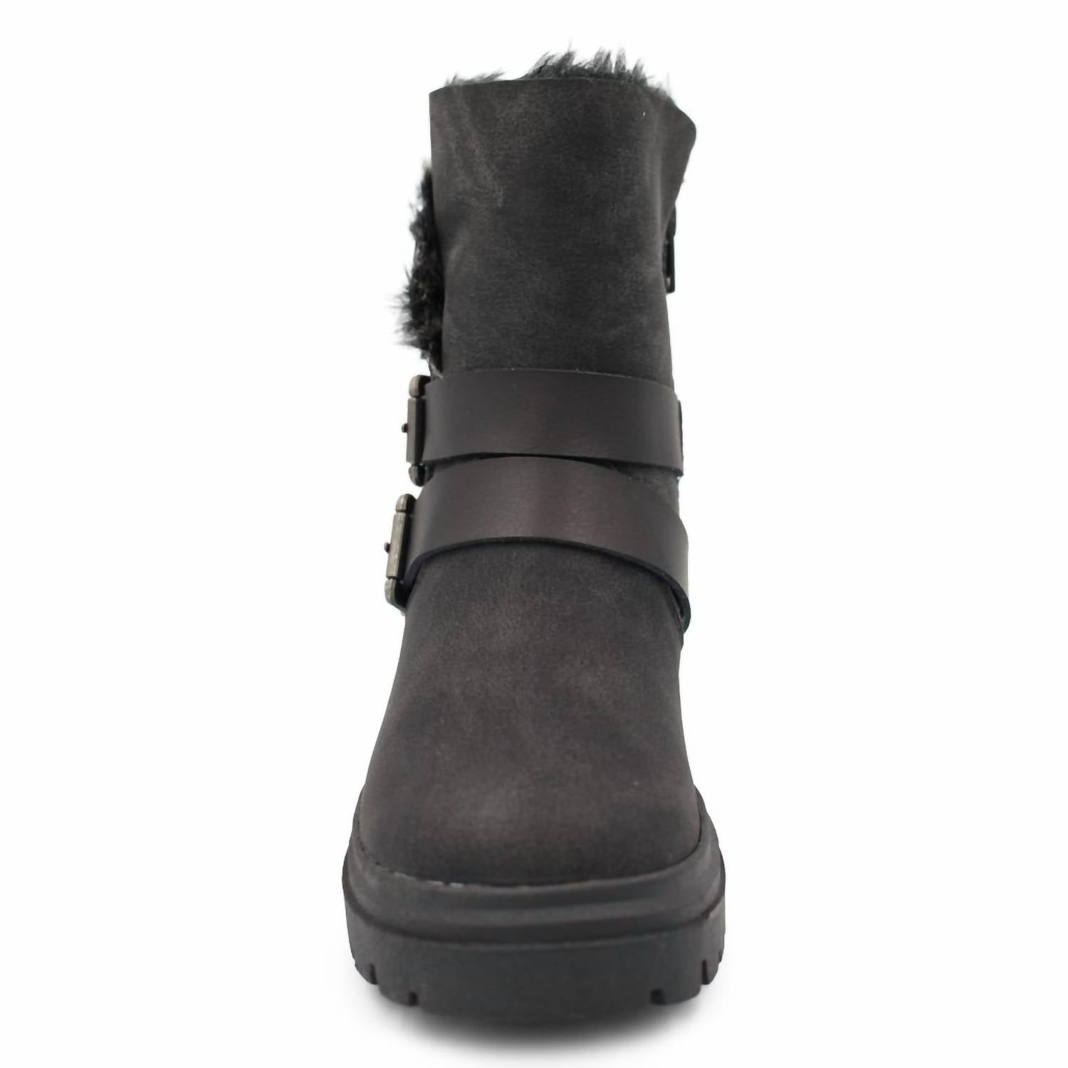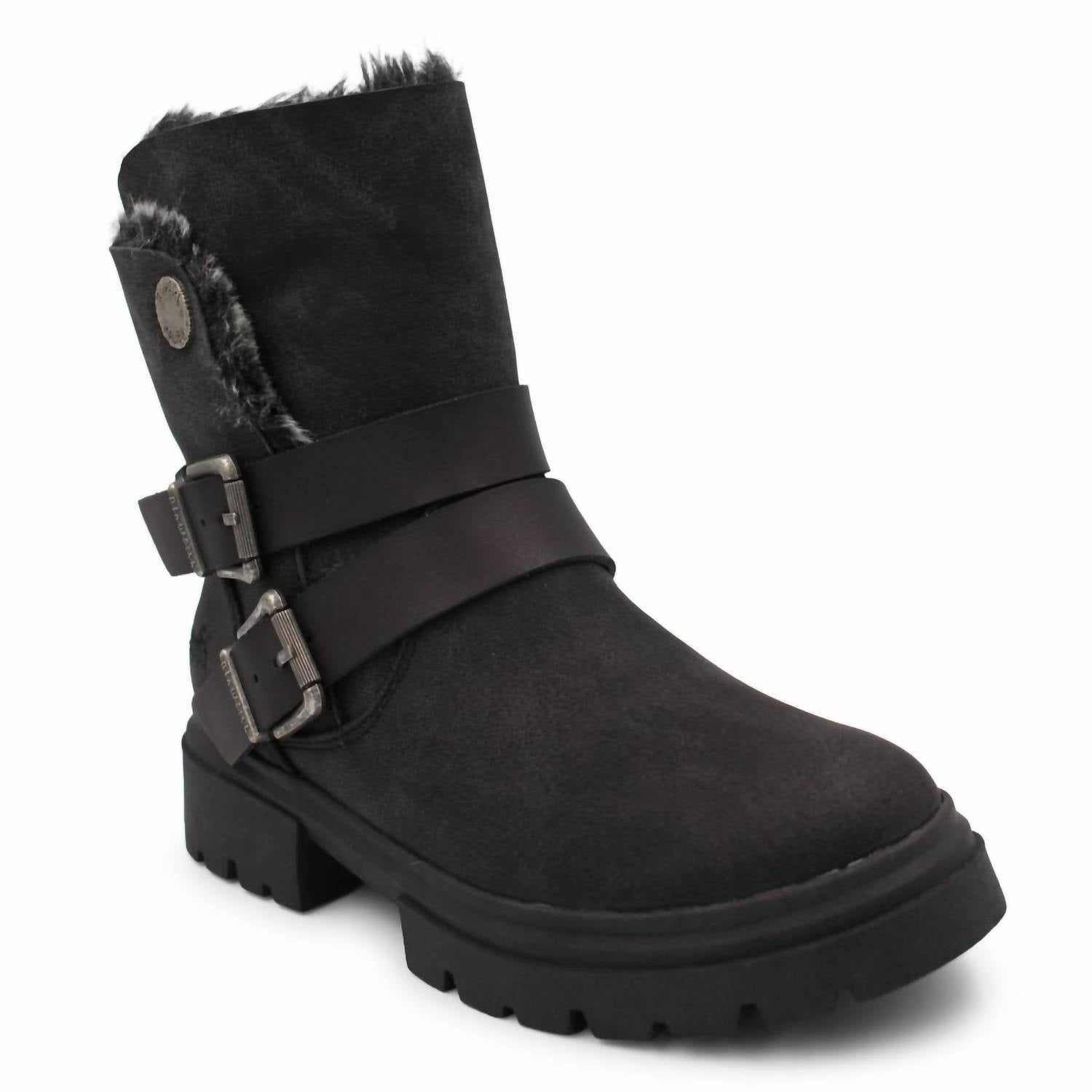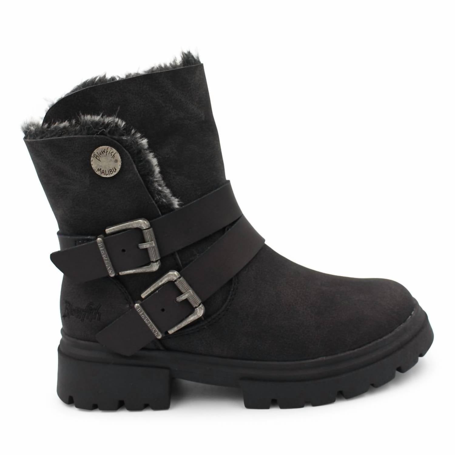 Discover the Kids Climber Boot by BLOWFISH in a chic Black Prospector shade, specifically designed for kids on the go. This boot offers a cozy shearling-inspired lining and a chunky heel, providing low heel height for comfort and style. The inside zipper ensures easy on/off access, while the durable rubber lug outsole enhances traction. With a medium width and round toe shape, this boot is perfect for all-day wear.