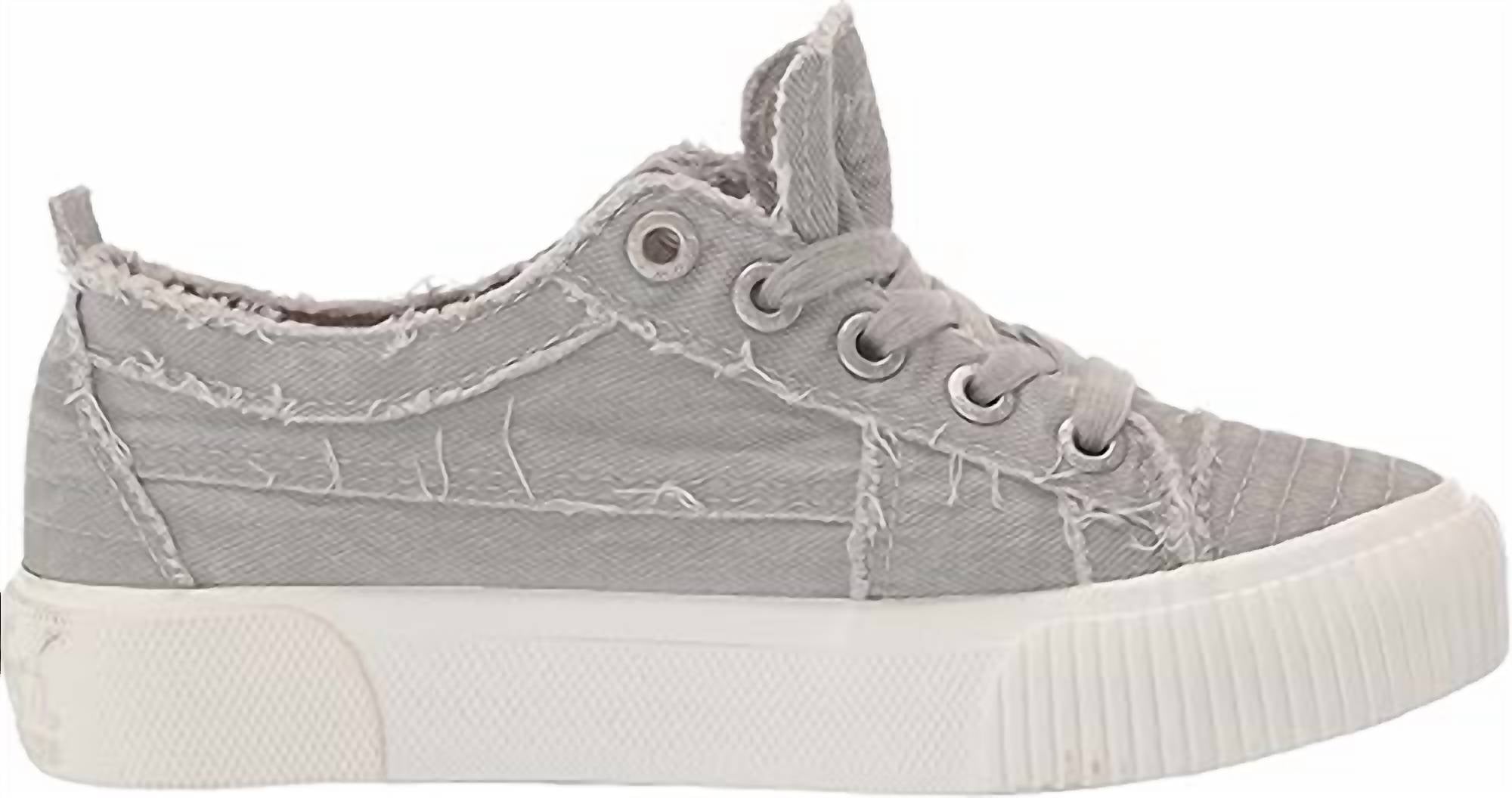 When fashion and function come together seamlessly. Step into spring with the Women's Clay Canvas Sneaker by BLOWFISH, tailored for both comfort and style in a vapor smoked color. Crafted with canvas fabric uppers and a low profile design, these sneakers feature a laced closure and fabric linings for a snug fit. The cushioned foam footbed ensures added comfort, while the vulcanized platform midsole and rubber traction outsole offer excellent support and grip. Ideal for streetwear enthusiasts, these shoes are the perfect flat heel option for a relaxed vacation look.