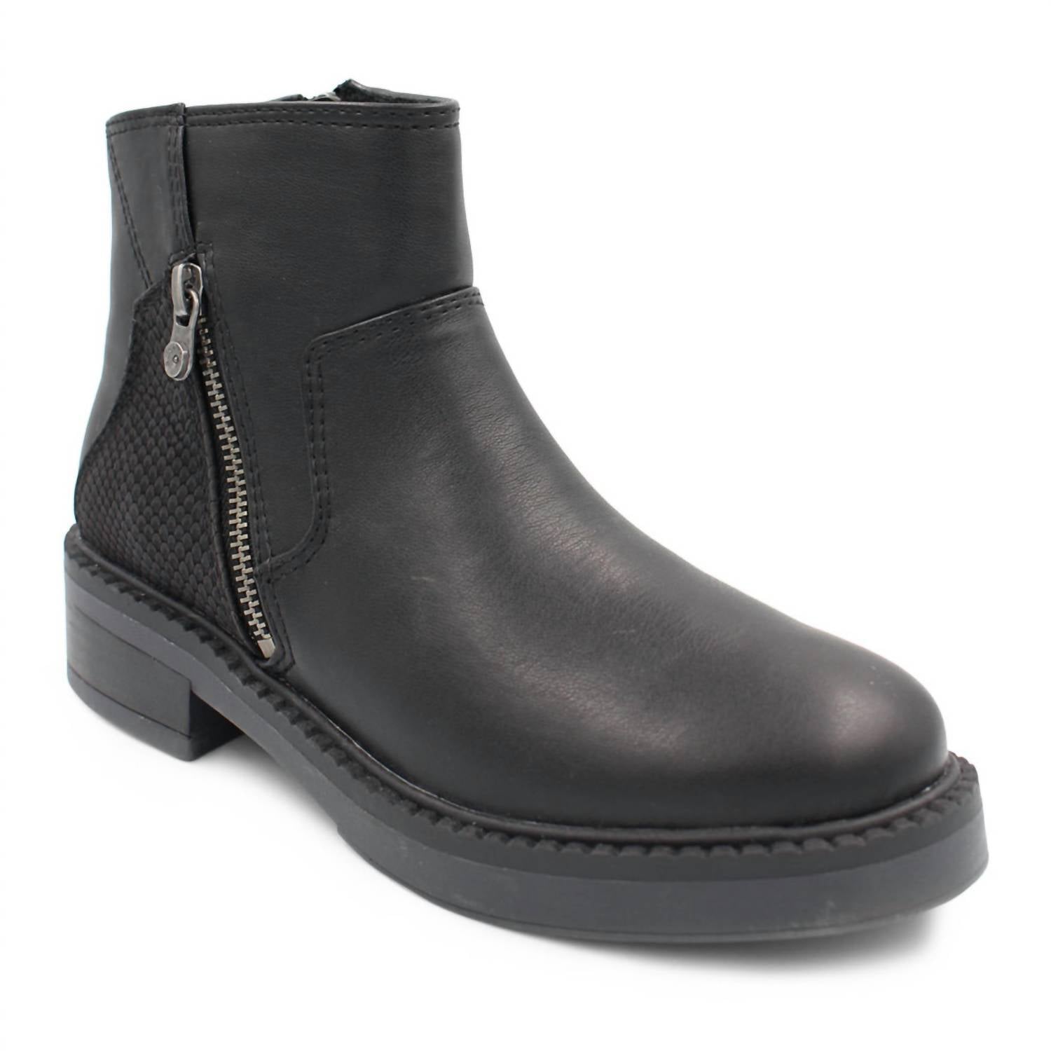 A stylish ankle boot with a zipper, strap, and buckle detailing that offers all day comfort too. Round Toe. Cushioned footbed.