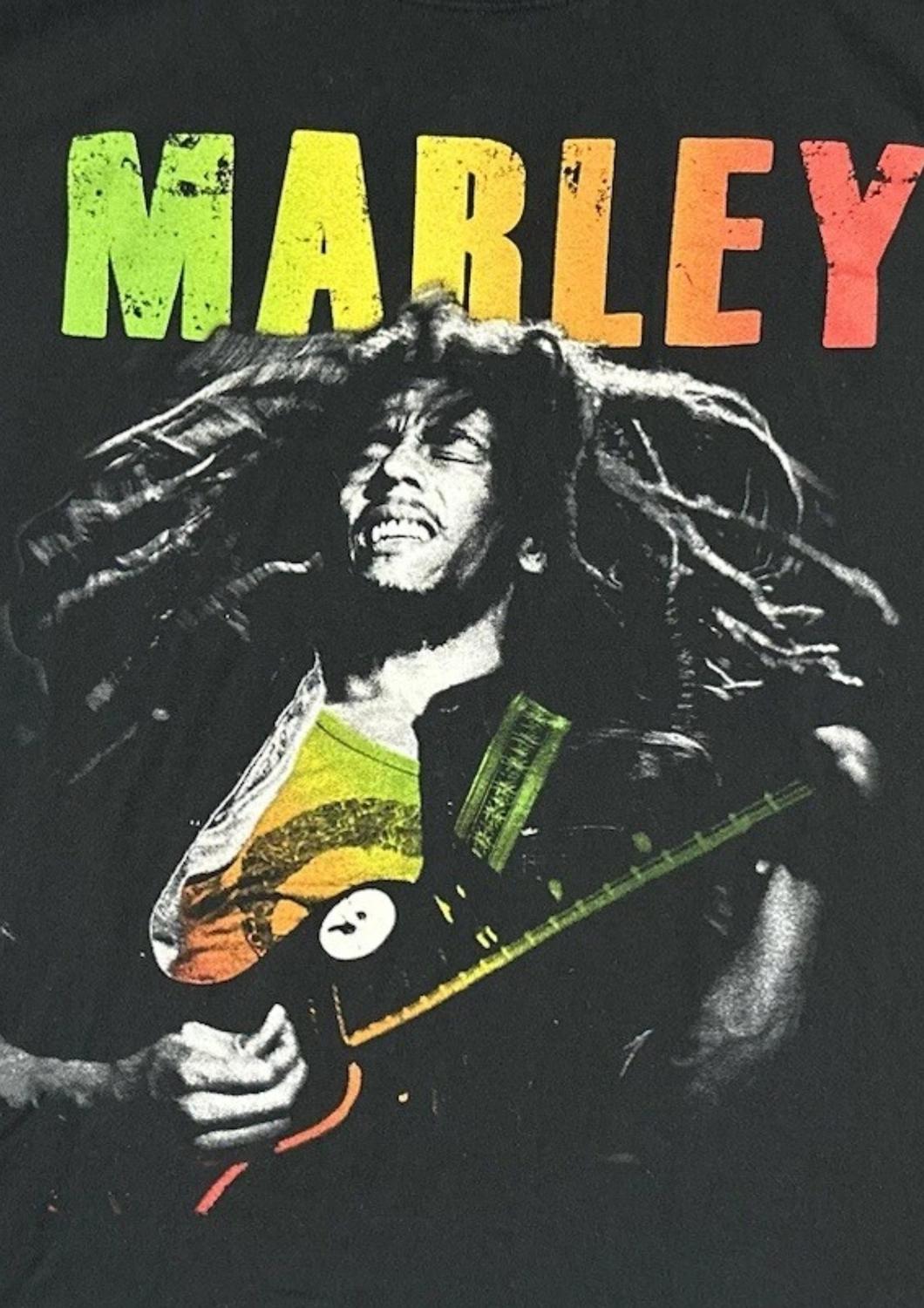 Celebrate your love for reggae with the Bob Marley Men's Jammin Gradient T-shirt, crafted from 100% soft cotton for premium comfort. The short sleeve, graphic tee features the legend himself with a vibrant rasta-colored logo that elevates your streetwear game. Designed with a pull-on closure and a classic crewneck, this black T-shirt is perfect for summer music festivals or any casual occasion. Care instructions: Hand wash for long-lasting wear.