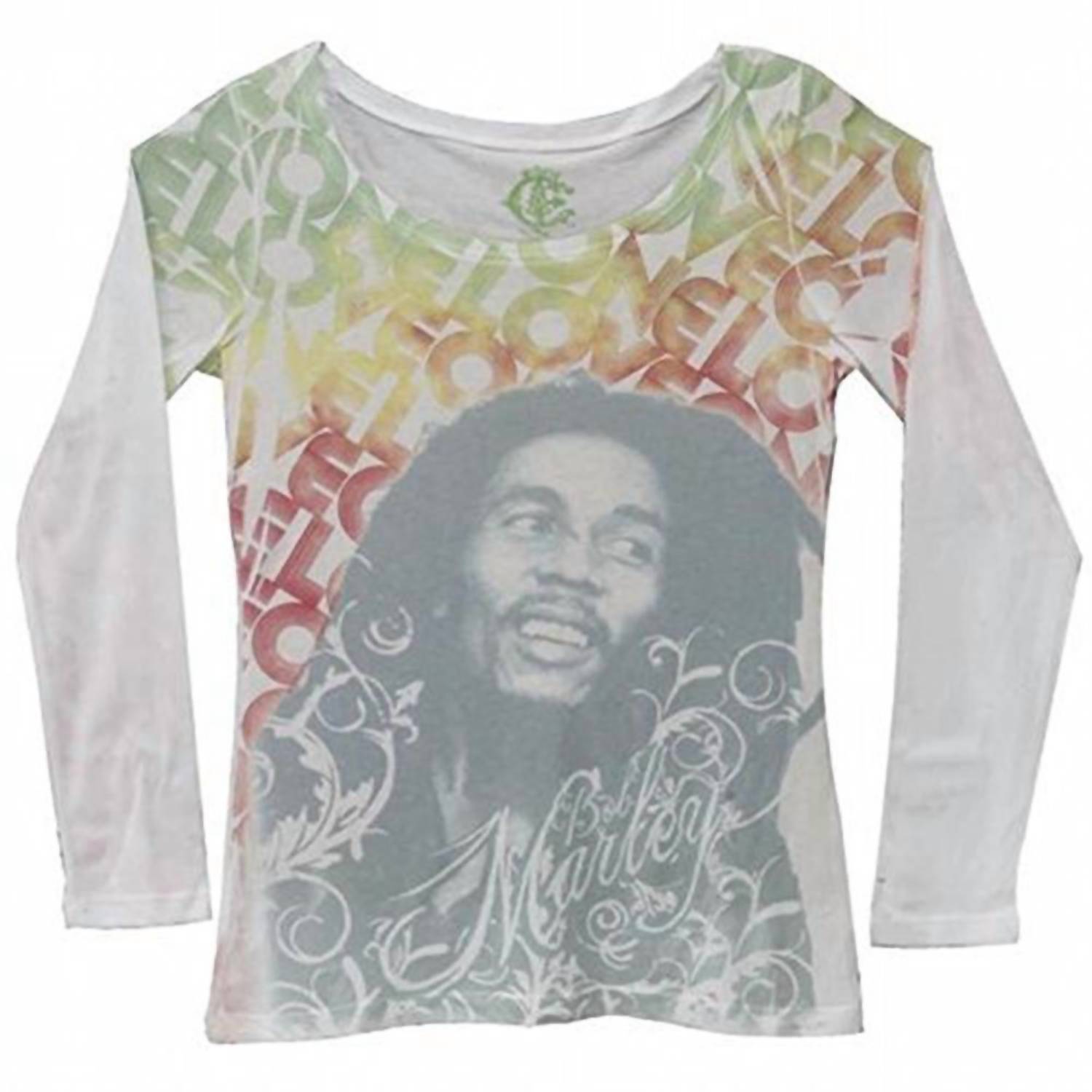 Embrace your inner free spirit with Bob Marley's One Love Juniors Long Sleeve T-shirt in timeless white. Made from a comfortable 50/50 cotton/polyester blend, this cotton blend tee features a graphic design sublimation dyed for a unique and flawless finish. Ideal for music festivals and summer streetwear, each piece carries slight imperfections that enhance its individuality. Care is a breeze with machine wash and tumble dry instructions, ensuring your festival-ready look is always easy to maintain.