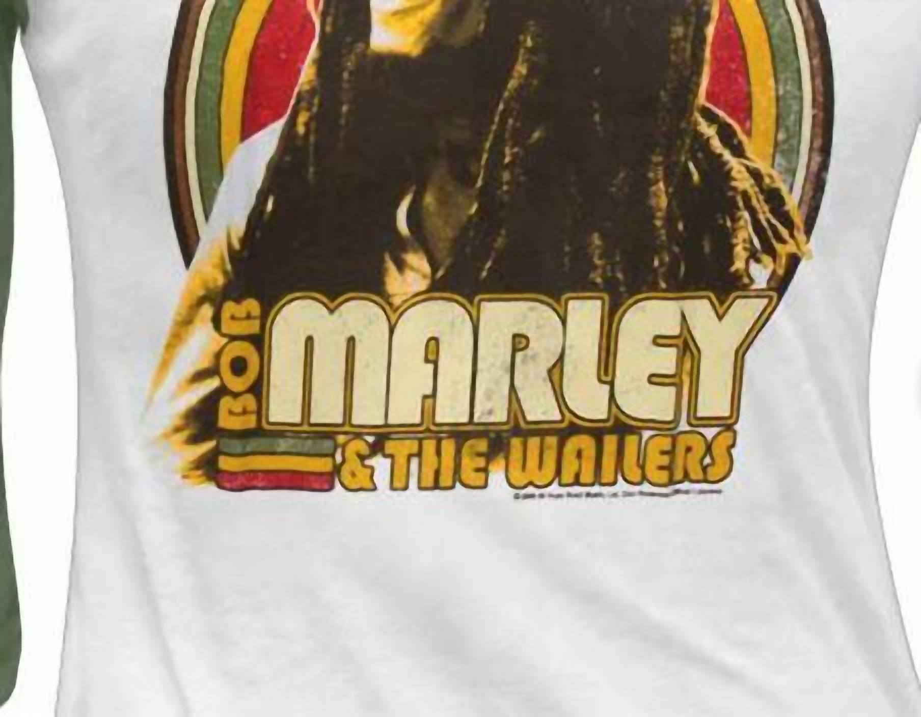 Celebrate timeless style with the Women's Wailers Juniors Raglan Tee by Bob Marley, featuring iconic three-quarter length sleeves. Crafted from 100% cotton, this tee promises comfort and breathability in a casual crewneck design. Express your love for the legendary Bob Marley with a classic graphic print, effortlessly combining streetwear trend with a relaxed holiday spirit. The pull-on closure makes it easy to slip into for any occasion.