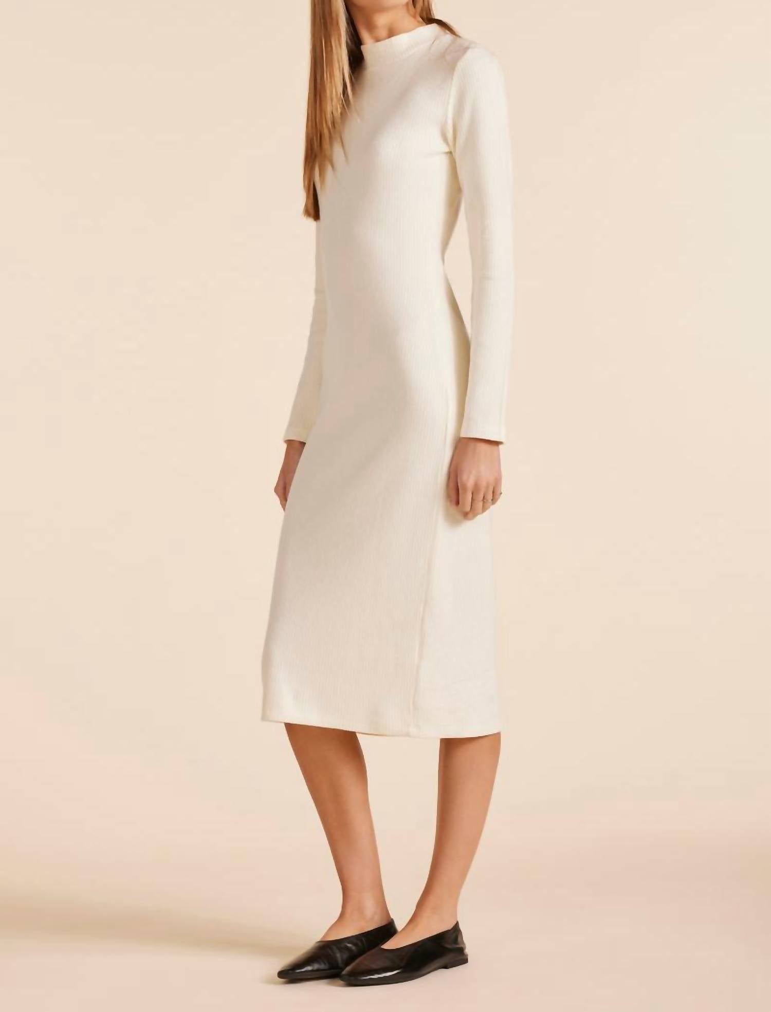 Elevate your wardrobe with the Fitted Long Sleeve Midi Dress by bobi in elegant beige, perfect for any dinner party or spring event. This sheath dress is made of 100% cotton in a novel rib texture, offering a luxurious feel and flattering fit. With its midi length measuring 44 inches, it features a stylish crewneck and pull-on closure for easy wear. Care for this minimalist, textured piece with a simple machine wash to maintain its sophistication.