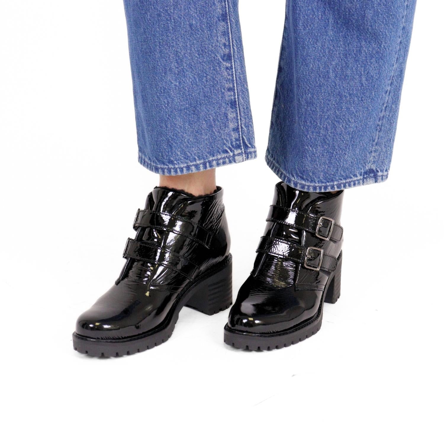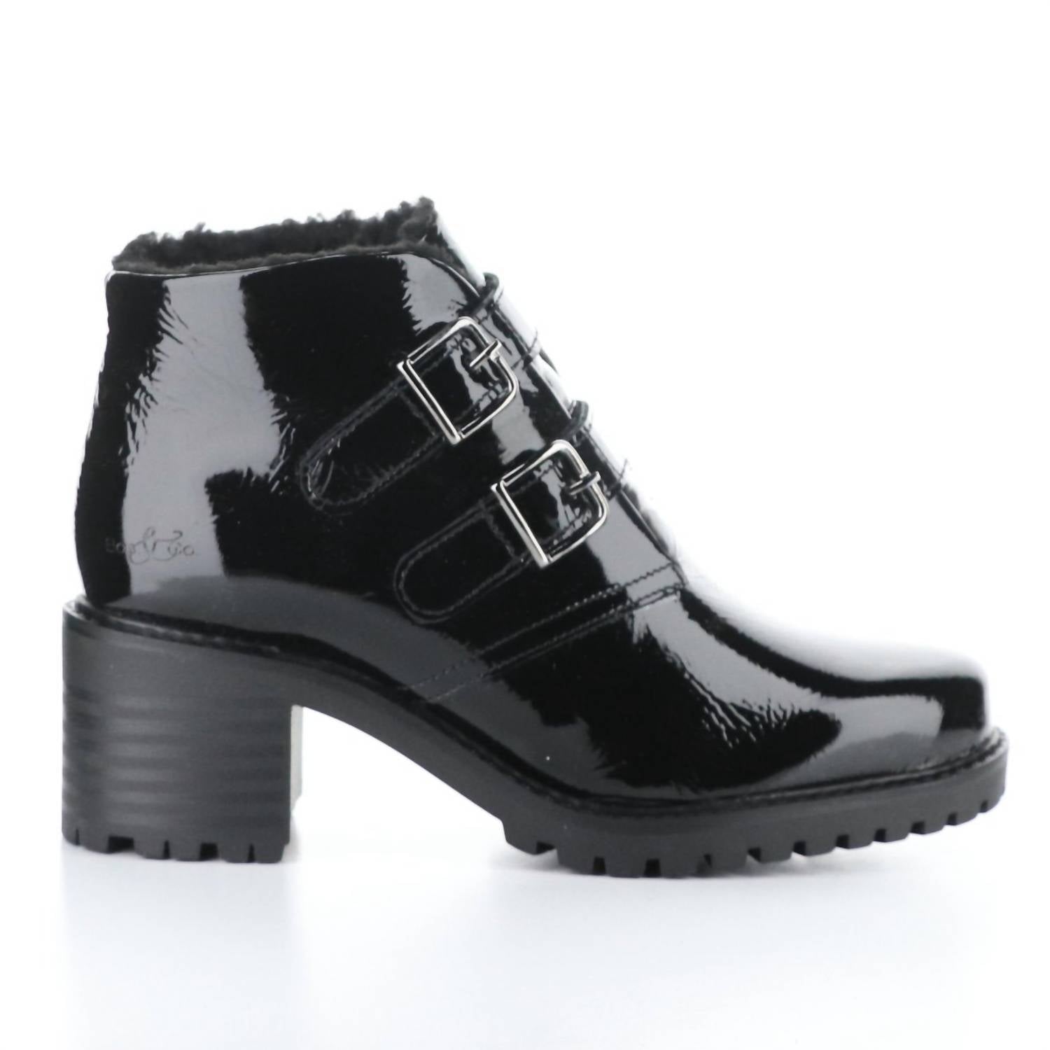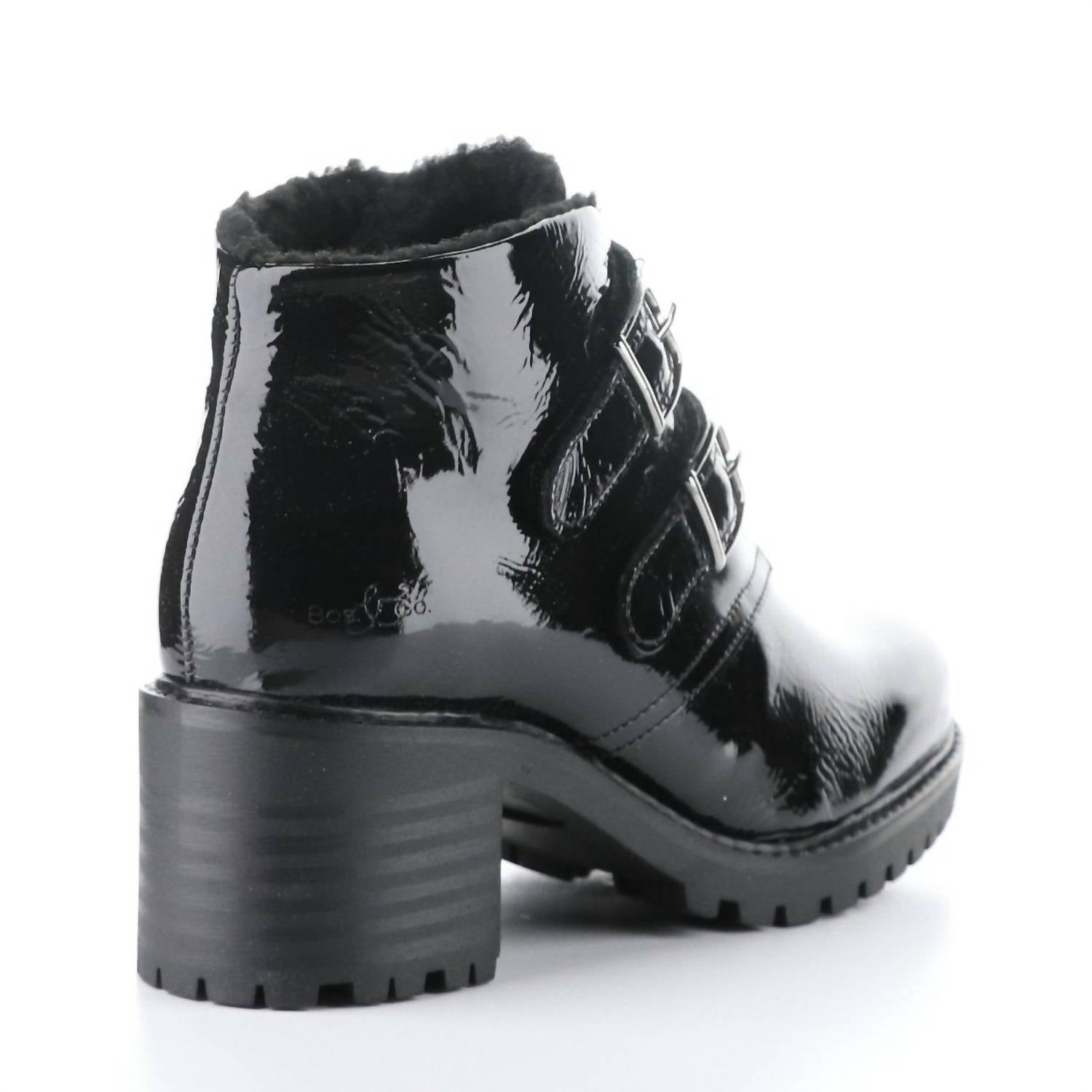 Say hello to the perfect, most versatile boot. The ankle height makes this style easily transition from day to night. Wear them with your favorite skinny jeans and tee for a more laid back look, or pair them with your favorite mini dress and jacket for a night out on the town. Introducing the Issey Boots by Bos. & Co., the ultimate cozy-chic staple for your winter wardrobe. Wrapped in woolly comfort with memory foam cushioning, these black ankle booties ensure warm toes and all-day support. The design features a 2.5" chunky heel on a 0.75" platform, perfect for showcasing cute socks or pairing under your favorite jeans. Made in Portugal, they include an adjustable ankle strap with a buckle closure for a personalized fit.