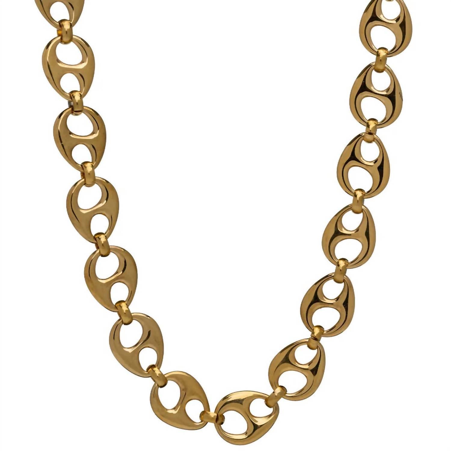 The perfect stand-out necklace that complements even the most basic t-shirt. Enhance your accessory collection with the Women's Piper Chain Necklace by BRACHA, an eye-catching piece in striking gold. This fashion necklace is crafted with gold plating over stainless steel, ensuring it’s water and tarnish-resistant. Showcasing a bold, chunky Gucci-style chain, it features a substantial 1/2 inch width and an 18-inch length, perfect for layering or standing out on its own. Elevate your style effortlessly with this statement-making piece.