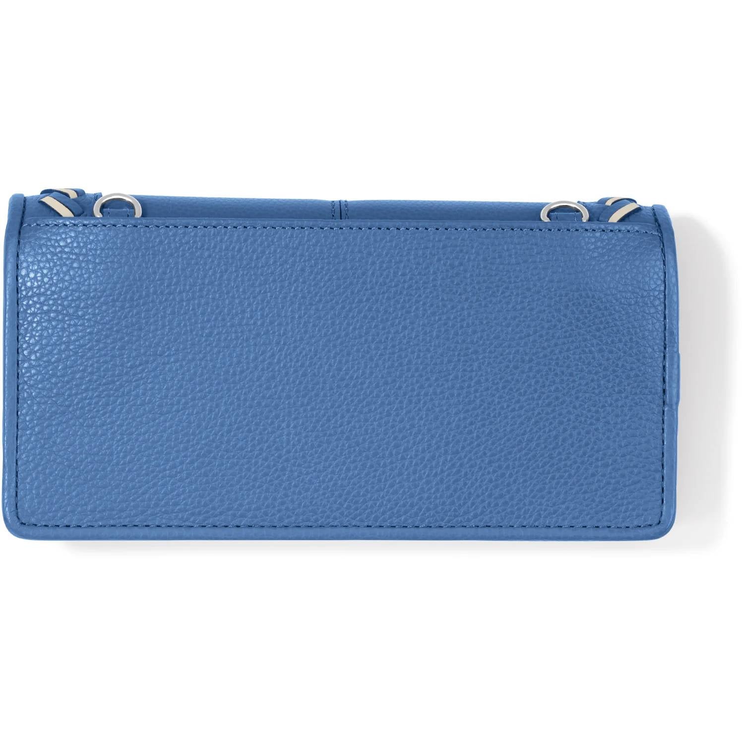 Enhance your accessory collection with this stylish wallet, expertly crafted to blend fashion and practicality. The multiple compartments provide easy organization for your cards and cash. The Bellaire Rockmore Wallet by Brighton is a stunning accessory crafted from premium leather in a striking Canyon Blue. Designed with exceptional equestrian details, this wallet combines practicality with elegance. It features a flap closure with a magnetic snap, ensuring your essentials are secure, and offers ample storage with 11 credit card slots, 5 interior pockets, and 1 exterior pocket. Dimensions are 7 3/8" in width, 4" in height, and 1" in depth, with a detachable strap ranging from 16" to 29".