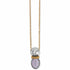 Petite pendant necklace features a moonstone with an opal layer. Gold plated finish. Lobster claw closure. German glass feature. 1 1/16" pendant drop. 16" - 20" Adjustable length.