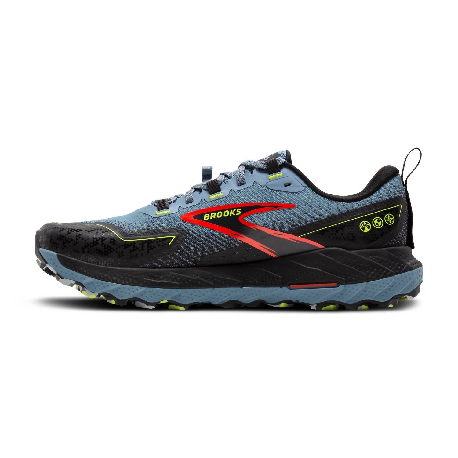 Introducing the Brooks Men's Cascadia 18 Trail-running Shoes, perfectly engineered for your outdoor adventures. These athletic shoes in a sleek grey color feature an updated mesh upper with protective overlays for high durability in demanding terrains. Designed with soft cushioning and an adaptable stability system, they ensure comfort while you tackle trails with confidence. Complete with sticky traction for secure steps, these shoes have a round toe and flat heel measuring 1" and under, making them ideal for fall hiking excursions.