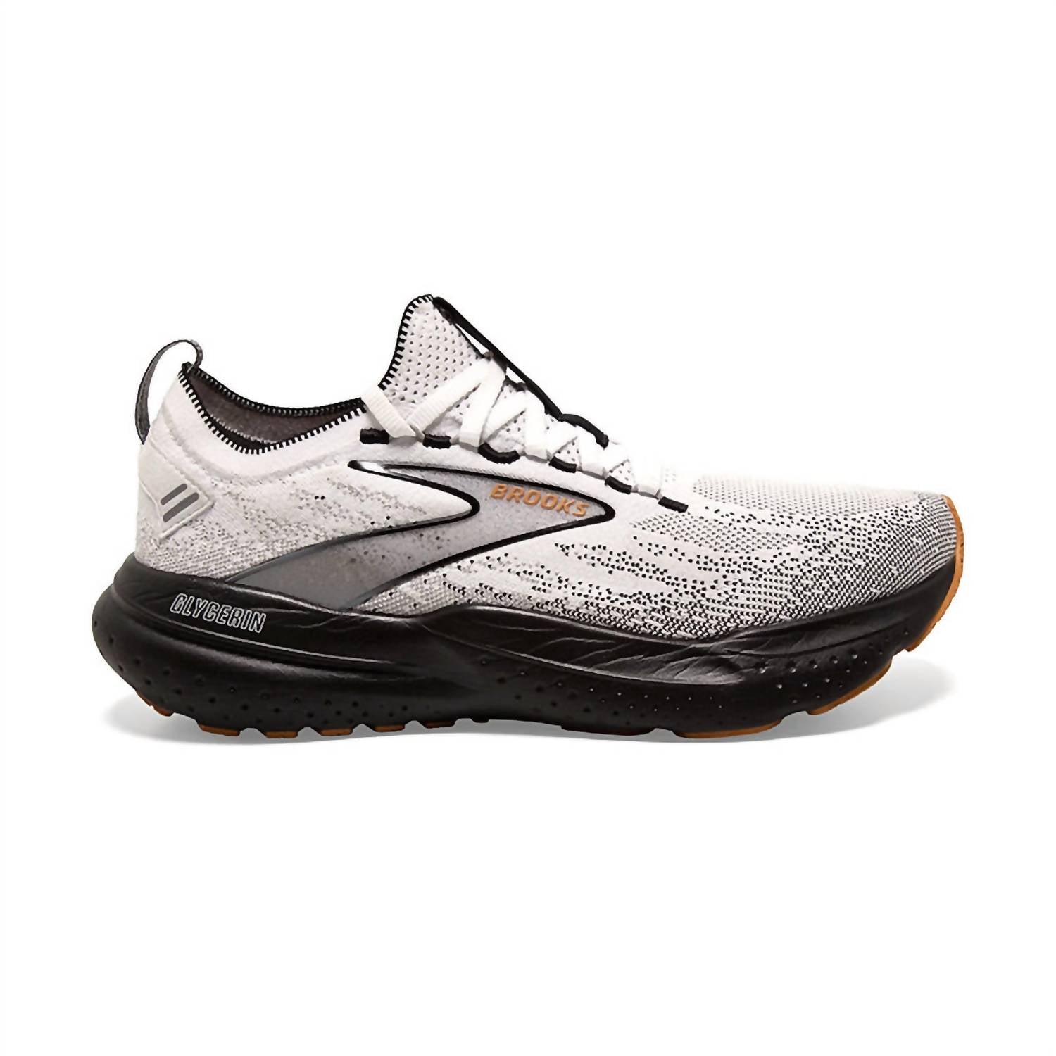 Experience unparalleled comfort and support with the Men's Glycerin Stealthfit Gts 21 Shoes by BROOKS, available in a sleek White/Grey/Black colorway. Expertly crafted with a rubber material, these athletic shoes are ideal for a range of workouts and activities. Designed for adult men, they feature a medium width and a round toe shape, complemented by a low heel height for added stability. A perfect blend of style and functionality for every fitness enthusiast.