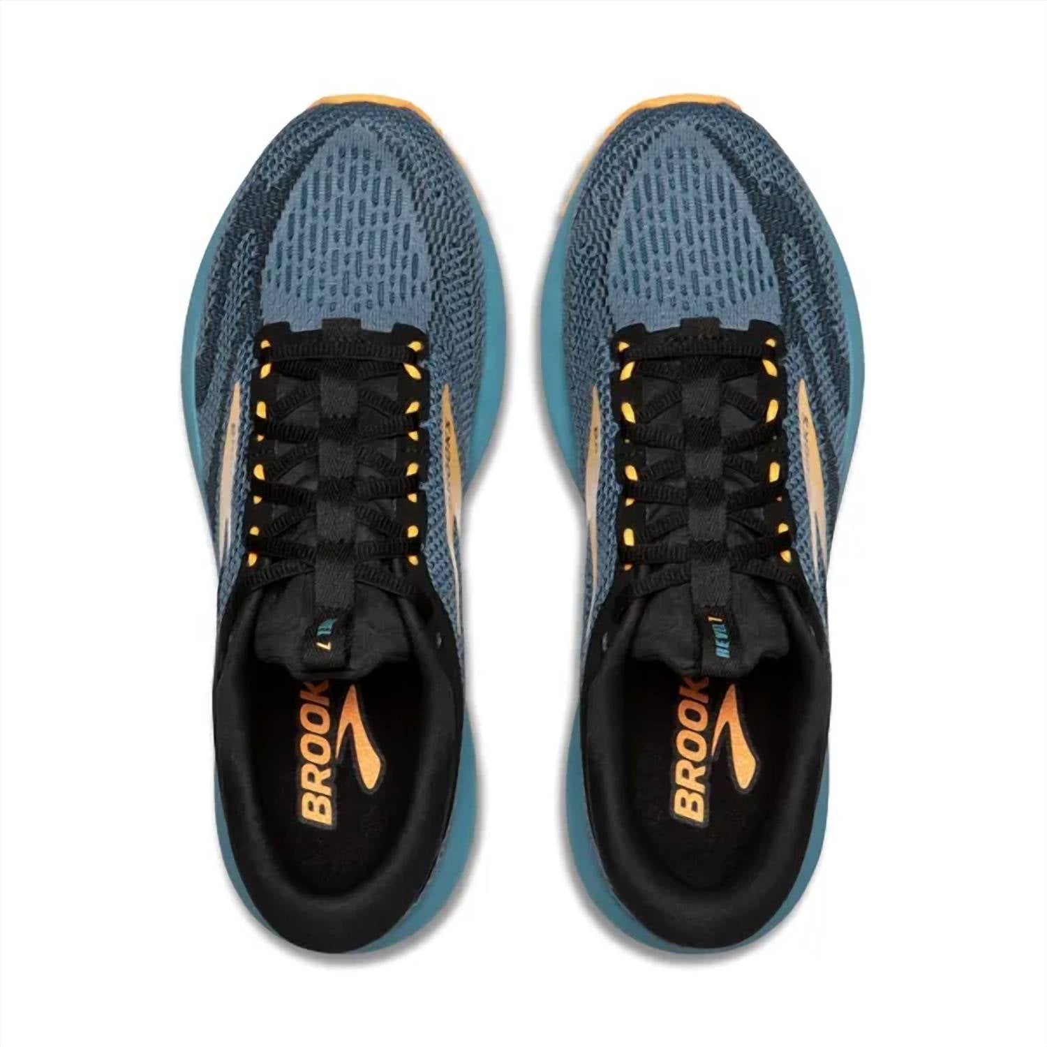 Experience the perfect blend of style and functionality with the Men's Revel 7 Shoes by BROOKS. Crafted with a durable rubber material, these shoes are designed in a Storm Blue/Black/Orange Pop colorway, ensuring both performance and aesthetics. Featuring a comfortable round toe shape ideal for athletic pursuits, elevate your workout with this sleek and reliable choice. Perfect for adult men, these athletic shoes are sure to enhance your sportswear collection.