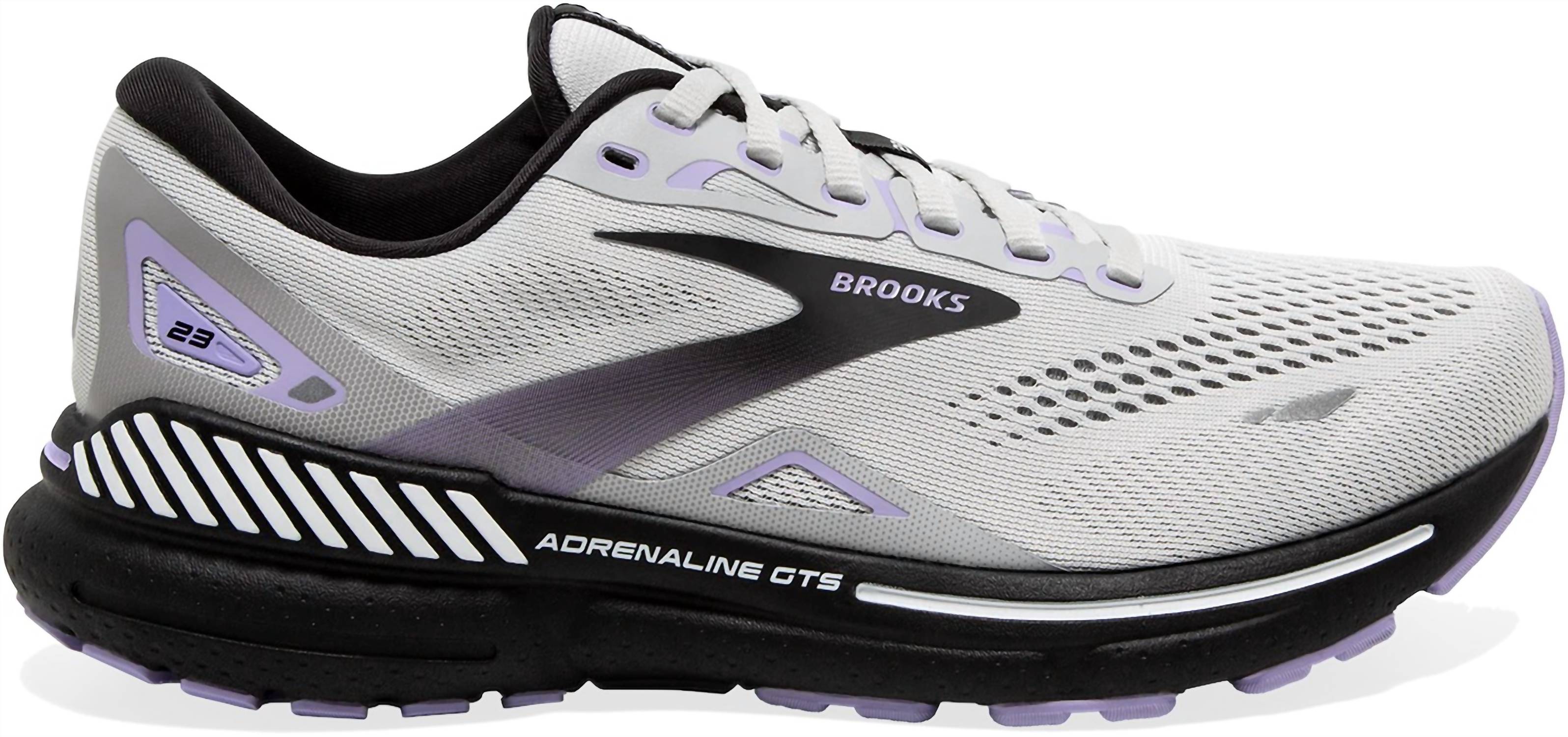 Cute, functional, and comfortable. These sneakers check all the boxes. Elevate your running experience with the Women's Adrenaline GTS 23 Sneakers by Brooks, a perfect blend of support and softness in a sleek colorway. Designed with whole body support and updated soft cushioning, these sneakers ensure smooth transitions, making them ideal for road running. With a 12mm midsole drop and enhanced upper. Expertly crafted to maintain your natural stride, these sneakers promise a pleasurable ride over countless miles.