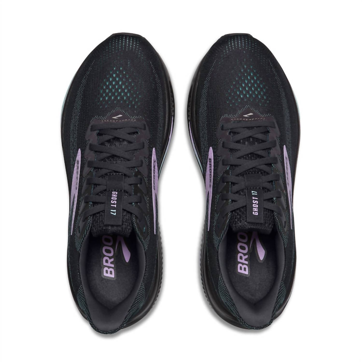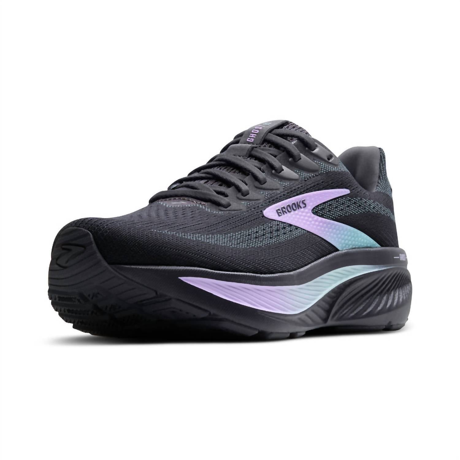 When fashion and function come together seamlessly. Experience the exceptional comfort and sustainability of BROOKS Women's Ghost 17 Sneakers in Grey/clearwater/purple, perfect for hiking and athleisure. This updated design features an upper crafted from 59% recycled materials, offering both structure and eco-friendly style, while the CarbonNeutral® certification ensures a reduced carbon footprint. Enjoy the benefits of soft and dynamic cushioning strategically added to the heel and forefoot for smooth transitions, all with a round toe shape that ensures a comfortable fit. Embrace the summer season’s adventures with these versatile sneakers designed for women.