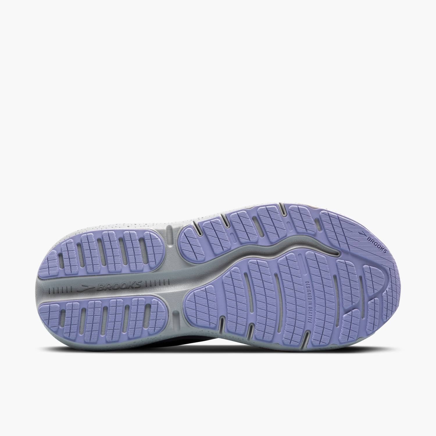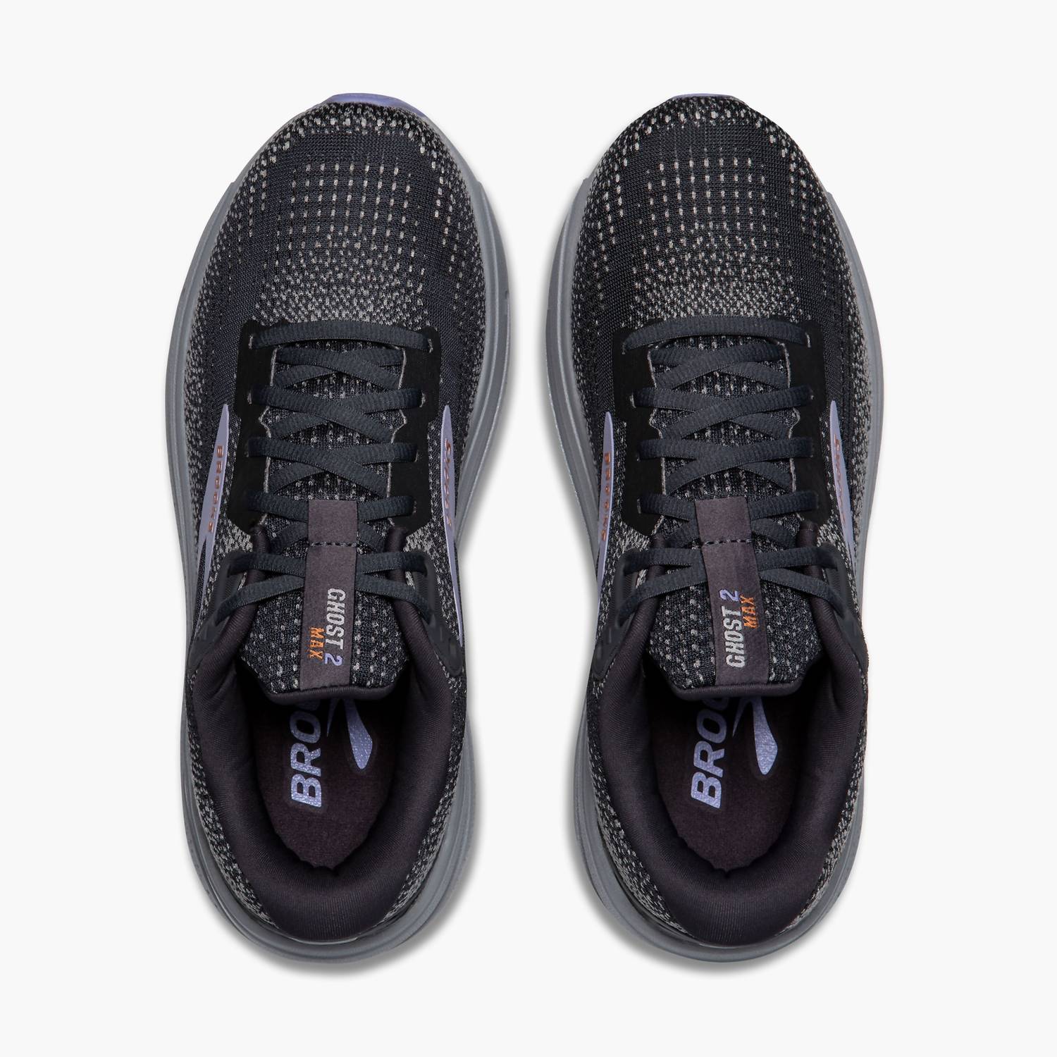 Stylish, comfortable and supportive. These athletic sneakers check all of the boxes. Experience unparalleled comfort and stability with the Women's Ghost Max 2 Running Shoes by BROOKS, perfect for both road running and walking. Sporting a sleek Ebony/Sweet Lavender/Alloy design, these shoes feature state-of-the-art cushioning, a rocker shape for assisted transitions, and a broad base for a stable ride. Crafted with 54.9% recycled materials in the upper, each pair diverts 6.18 plastic bottles from landfills, making this a certified CarbonNeutral® product. With a midsole drop of 6mm and weighing just 9.7oz (275.0g), they offer a light yet supportive experience for every stride. Toe shape: Round Toe. Shoe width: Medium.