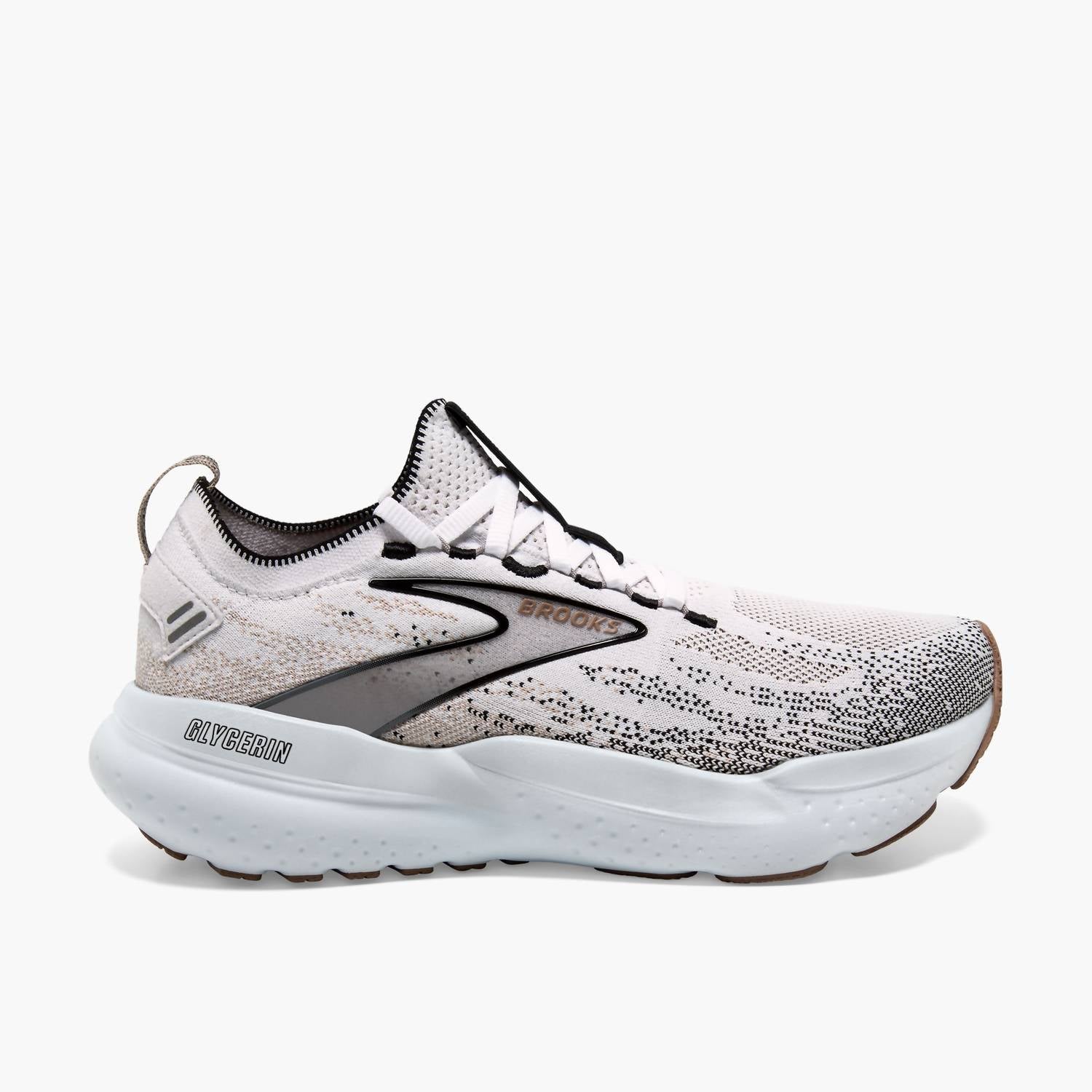 When fashion meets function. Experience the ultimate in street-ready comfort with the Women's Glycerin Stealthfit 21 Running Shoes by BROOKS, designed for adaptive fit and supreme softness. These shoes feature nitrogen-infused DNA LOFT v3 cushioning, offering a blend of stretch and compression for smooth, stable transitions. Sustainability is key, with 64.4% recycled materials in the upper and a 10mm drop for optimal running on asphalt. Weighing just 8.3 oz (235.3 g), they feature a versatile silhouette, perfect for those seeking extreme comfort with every step. Ideal for medium-width feet with a round toe, these chic shoes come in a sleek White/Grey/Black color.