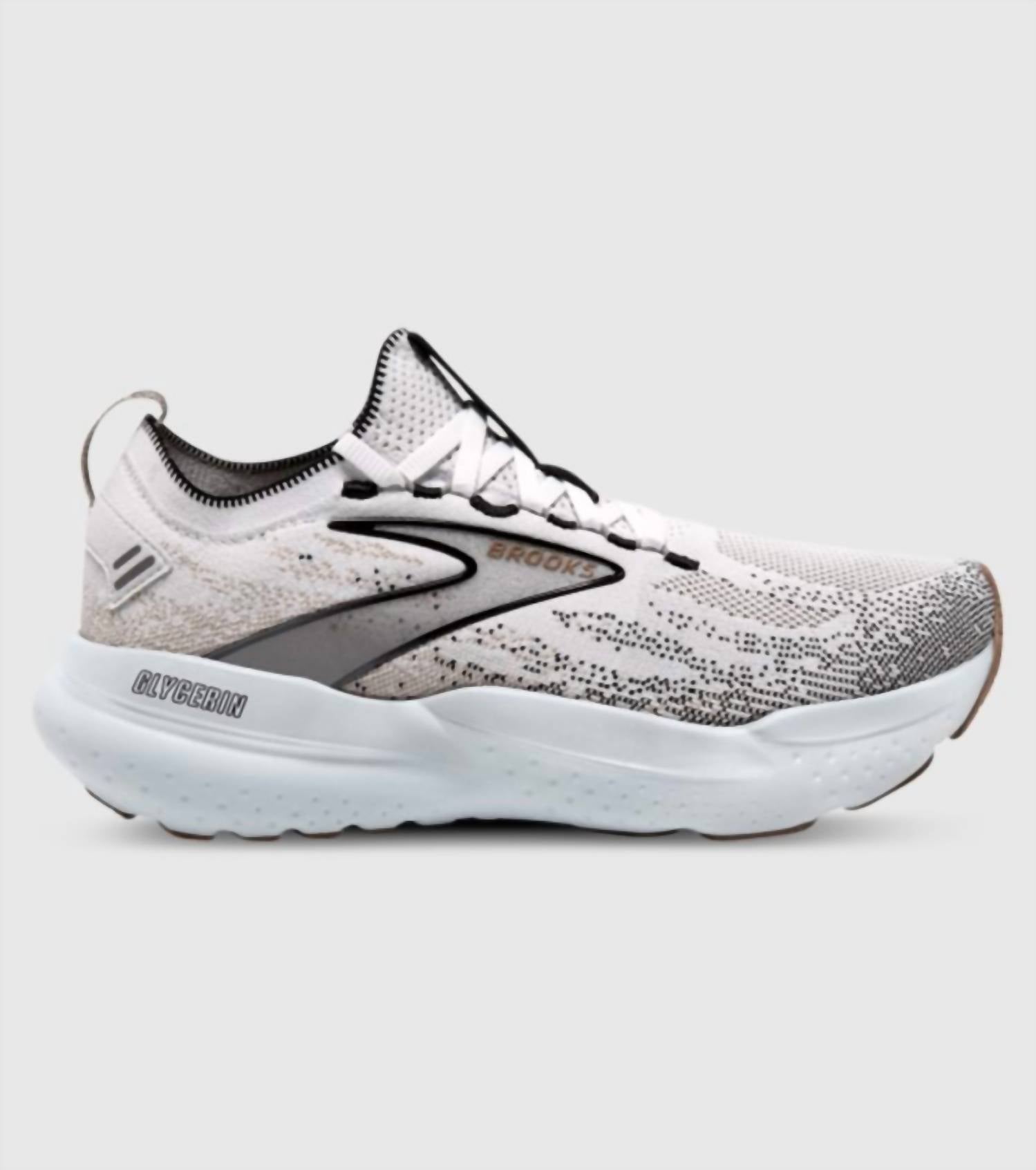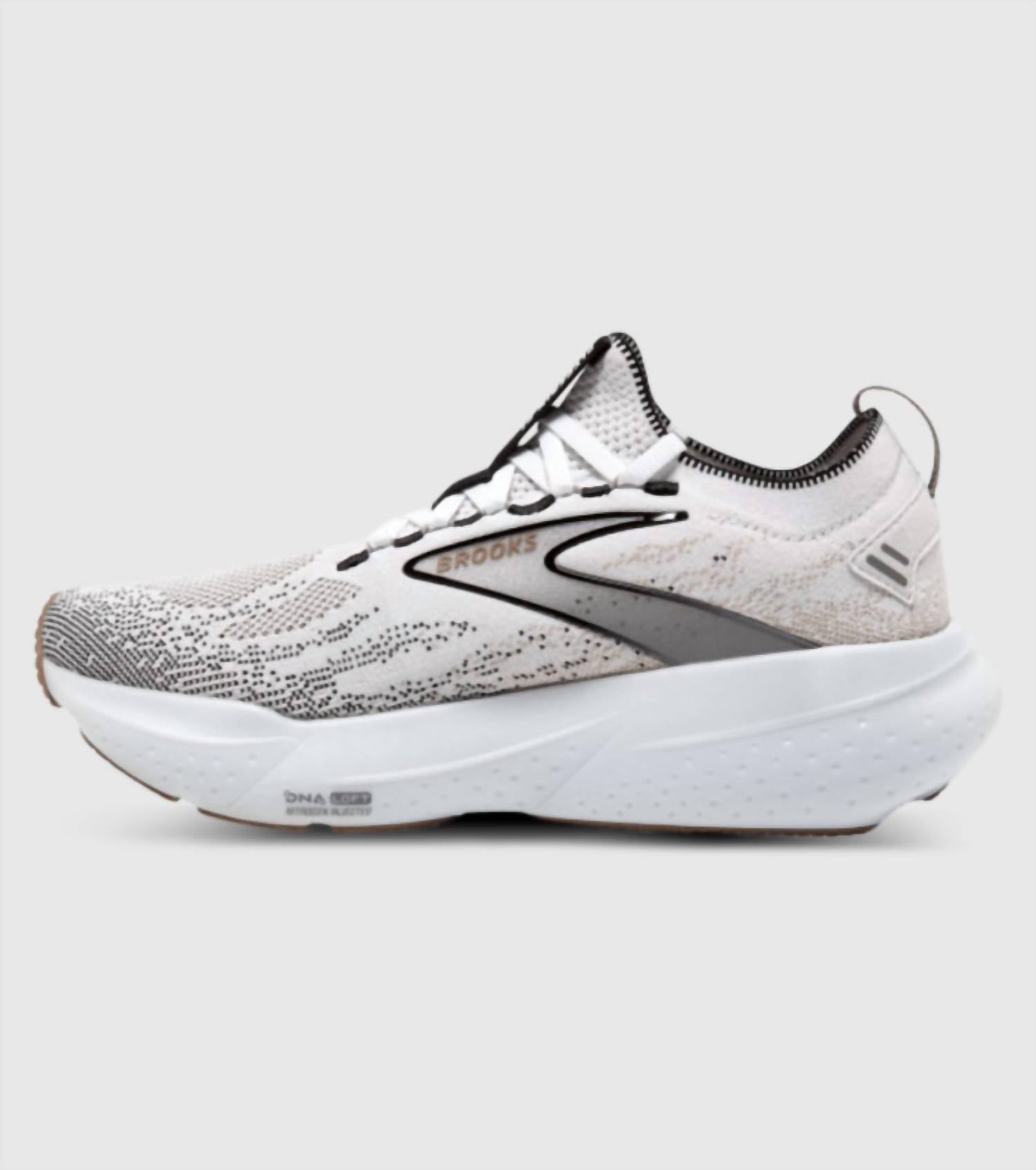Workout in style with these adorable athletic sneakers. Step into comfort with the Women's Glycerin Stealthfit Gts 21 Shoes by BROOKS, designed in a sleek White/Grey/Black palette. Tailored for medium width, these athletic shoes feature a round toe for added comfort. They are crafted with durable rubber, ensuring long-lasting wear and support. Proudly designed without additional heel height, making them ideal for any activity.
