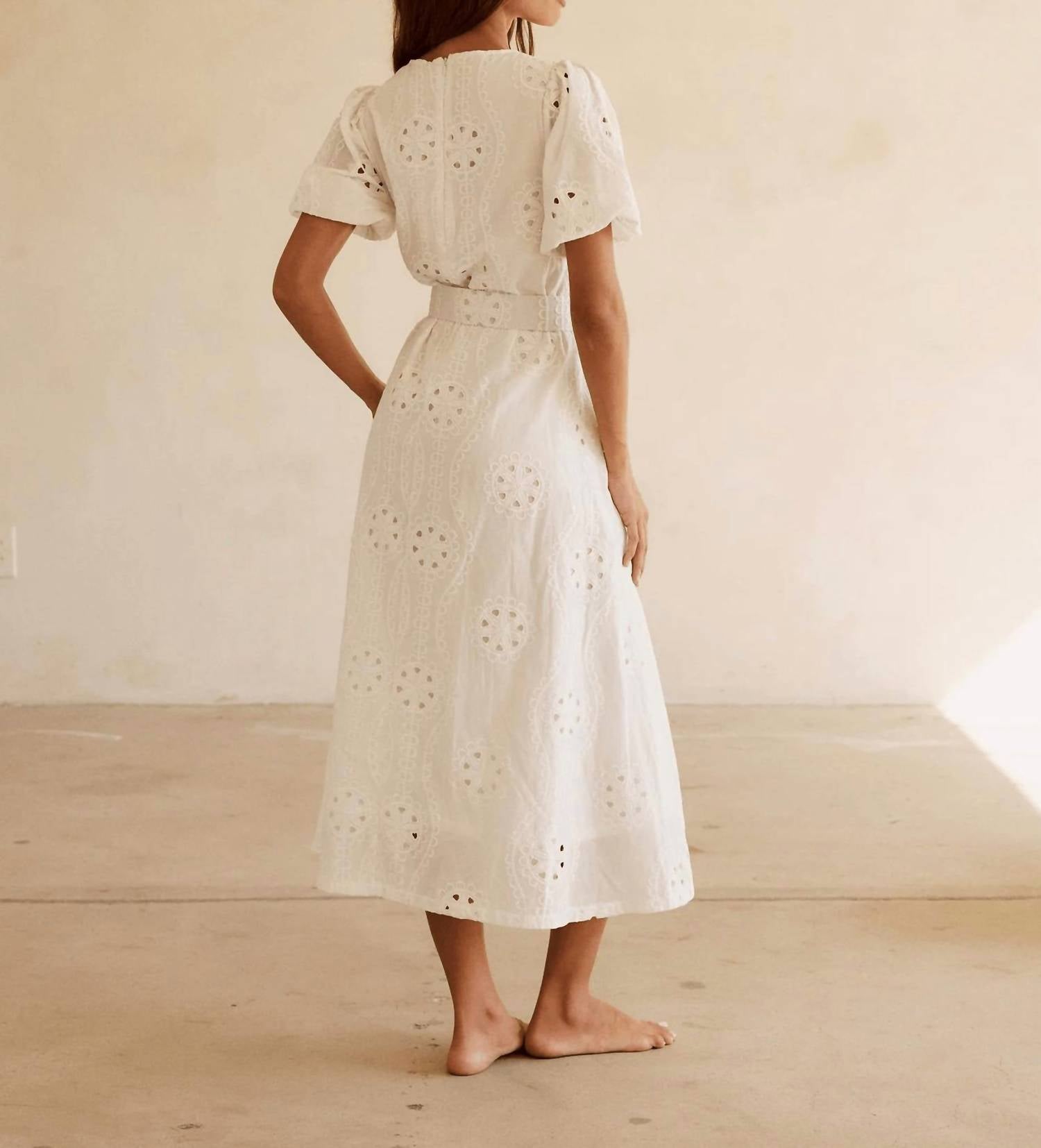 Step out in style with the Liana Midi Dress by BTB Los Angeles, an exquisite piece for any occasion. This white shift dress, made from lightweight cotton, features short sleeves, a classic crewneck, and elegant keyhole cutouts for a charming look. Designed for a sophisticated fit, it includes a zip closure and a chic belt at the waist. Care for this boho chic silhouette by dry cleaning only, ensuring it remains a staple in your spring wardrobe.
