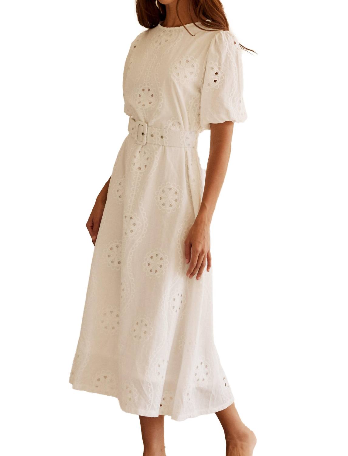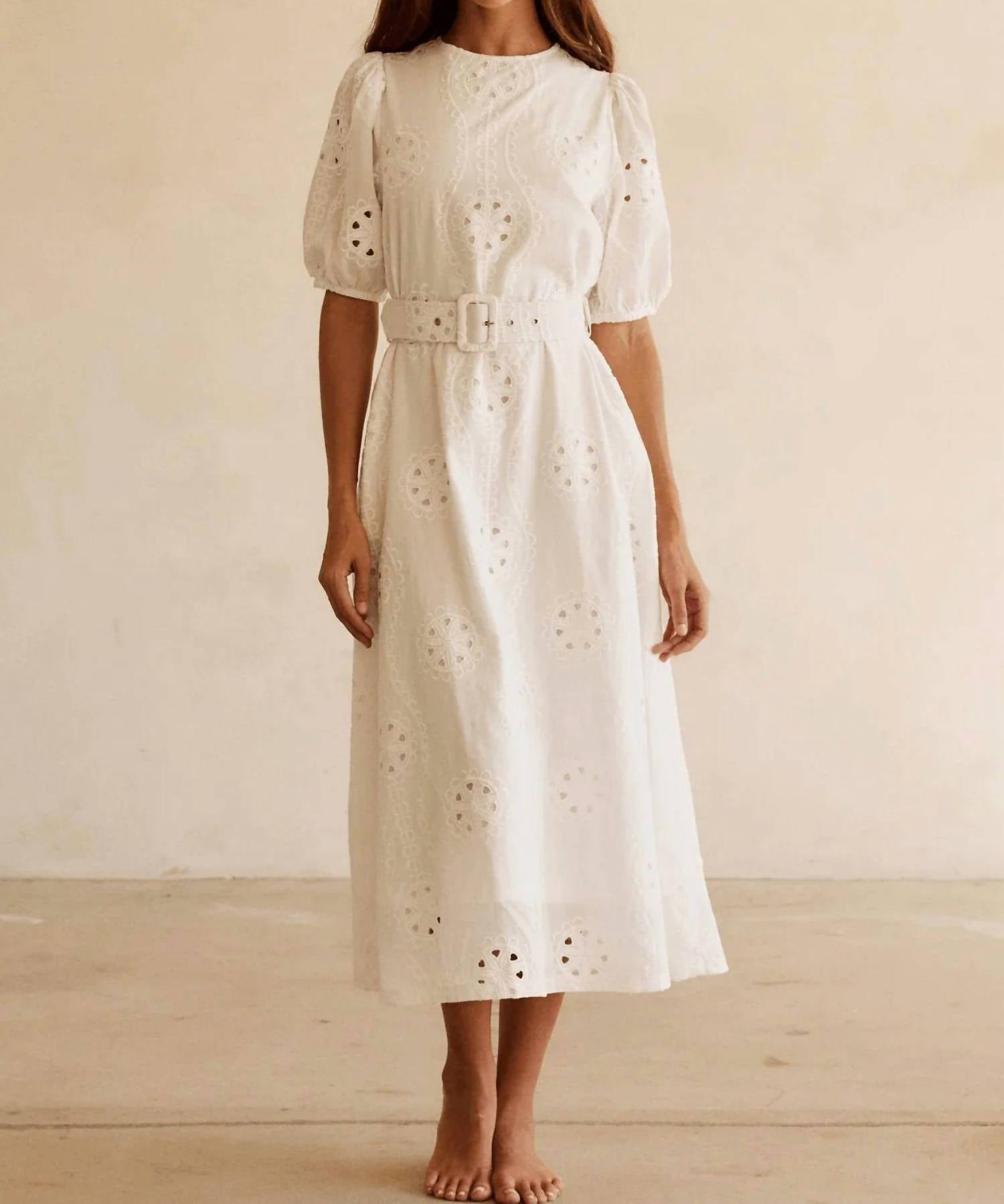 Just add slides or mules and you are good to go. Step out in style with the Liana Midi Dress by BTB Los Angeles, an exquisite piece for any occasion. This white shift dress, made from lightweight cotton, features short sleeves, a classic crewneck, and elegant keyhole cutouts for a charming look. Designed for a sophisticated fit, it includes a zip closure and a chic belt at the waist. Care for this boho chic silhouette by dry cleaning only, ensuring it remains a staple in your spring wardrobe.