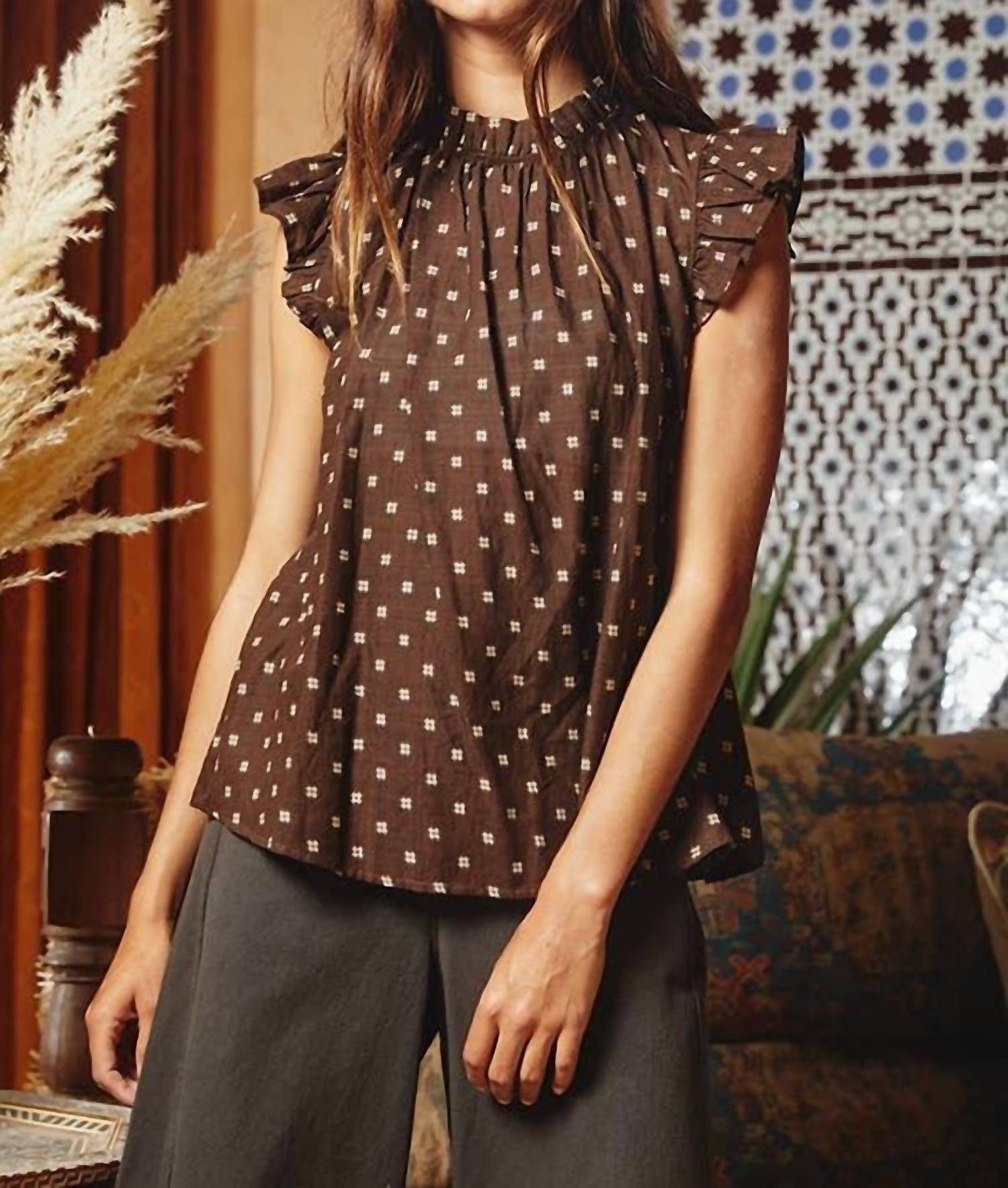 Bucketlist - Pretty Ruffle Neck And Shoulder Blouse