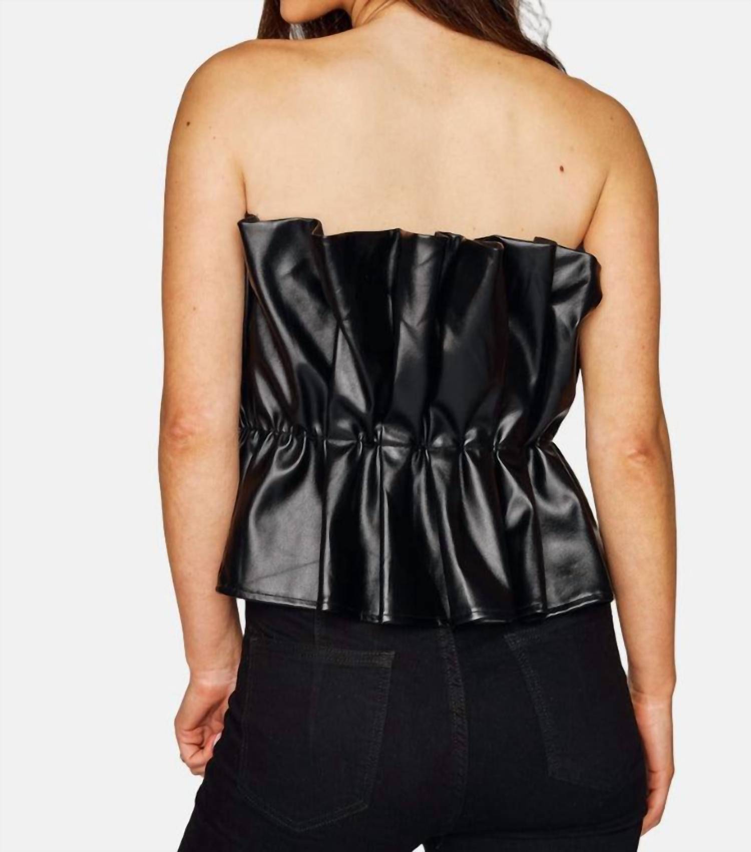 Pair this crop top with your favorite high-waisted jeans or maxi skirt. Pleated and pretty. Features an elastic band with good stretch. True to size. Cropped fit falls at natural waist. Relaxed fit accommodates all bust sizes. Cinched waist. Fabric contains minimal stretch. Self 55% Polyester. 45% PU. Lining 100% Polyester.
