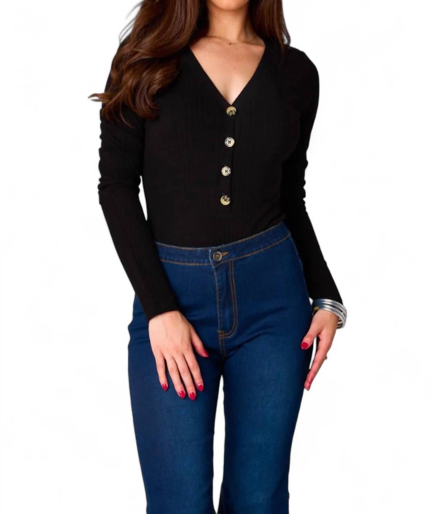 Form fitting and comfortable - this bodysuit check all of the boxes.This ribbed bodysuit features a front button closure, super soft fabric, and a cheeky bottom with snap closures at the legs. The fabric contains stretch (48% rayon, 27% polyester, 20% nylon, 5% spandex) for added comfort. It fits true to size and accommodates most bust sizes. The size small measures 27 inches from shoulder to hem.