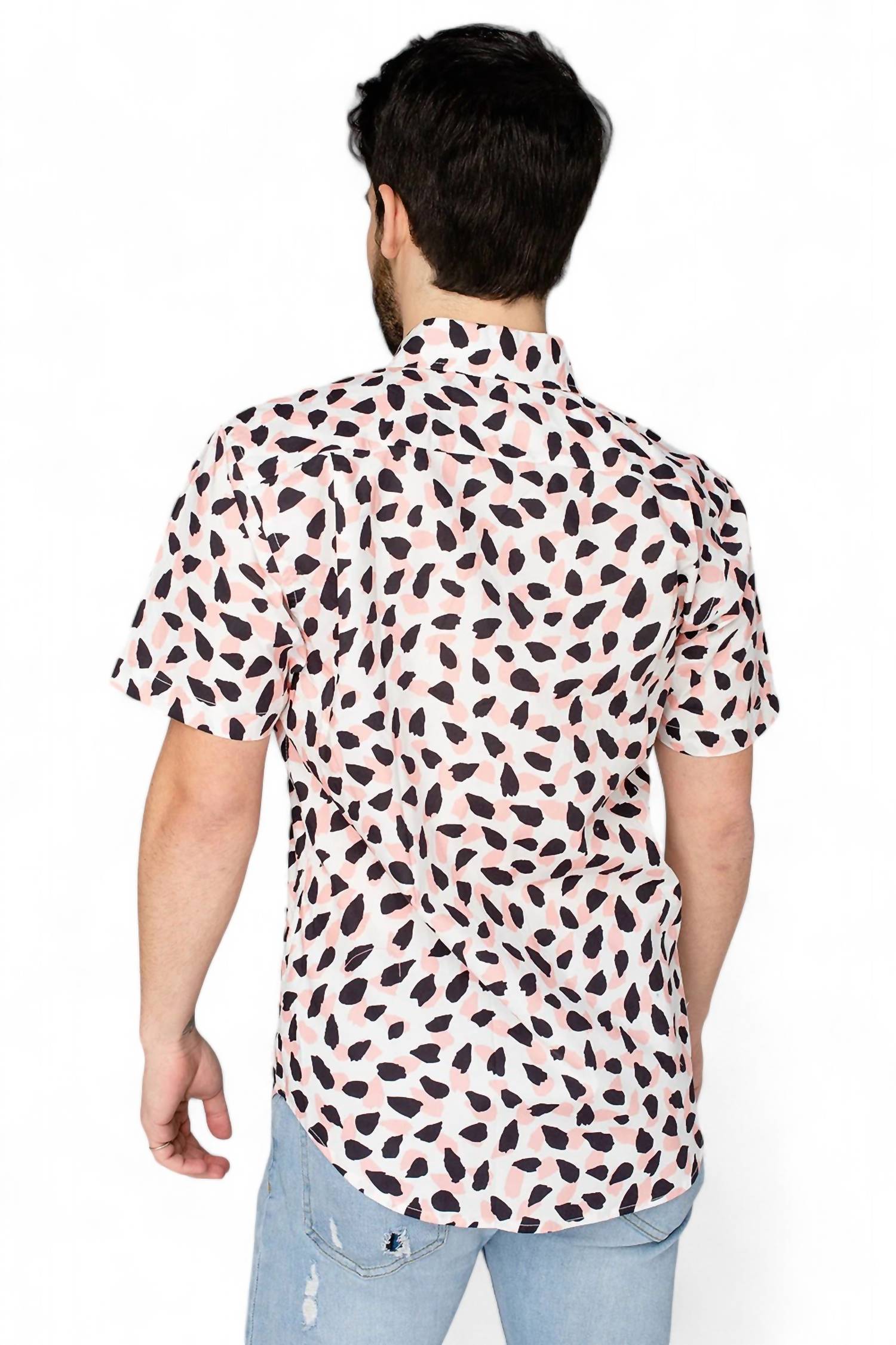 This shirt offers a slim fit with a button closure running down the front and short sleeves. Crafted from 100% cotton, it provides both comfort and breathability. Measurements on Length: S-28.5", M-29", L-29.5", XL-30", XXL-30.5". Measurements on Chest: S-39", M-41", L-43", XL-45", XXL-47".