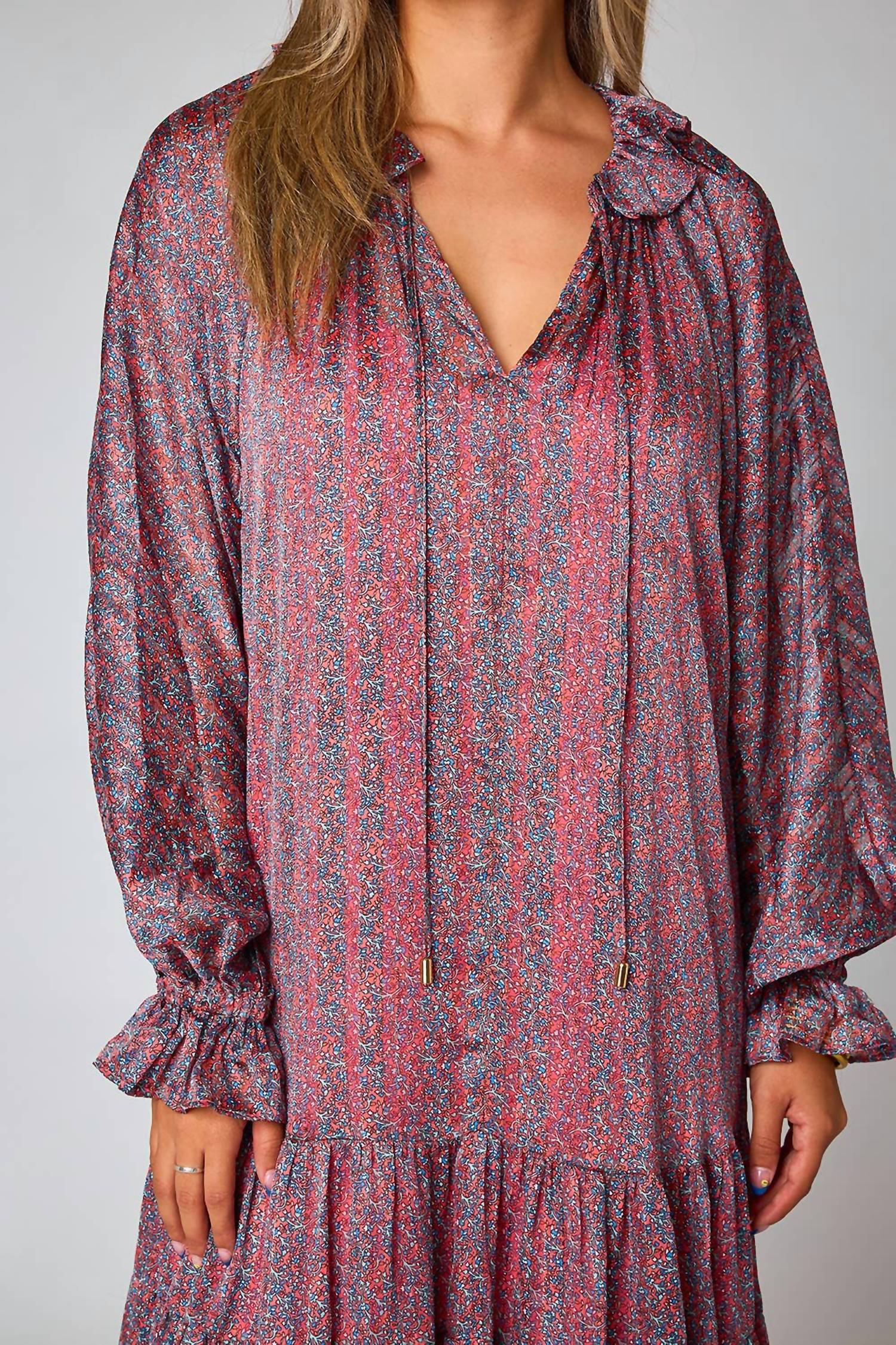 Style this maxi with your favorite statement necklace and sandals for the perfect look. The Wishful Dreaming Maxi by BuddyLove is an exquisite piece in the enchanting Forget Me Not print, ideal for your fall wardrobe. This dress flaunts a v-cut neckline with a decorative drawstring, long sleeves with smocked wrists, and an elegant A-line silhouette for a flowing fit. Made from 100% polyester, it measures 50.5 inches in length from shoulder to hem and is designed with a convenient pull-on closure.