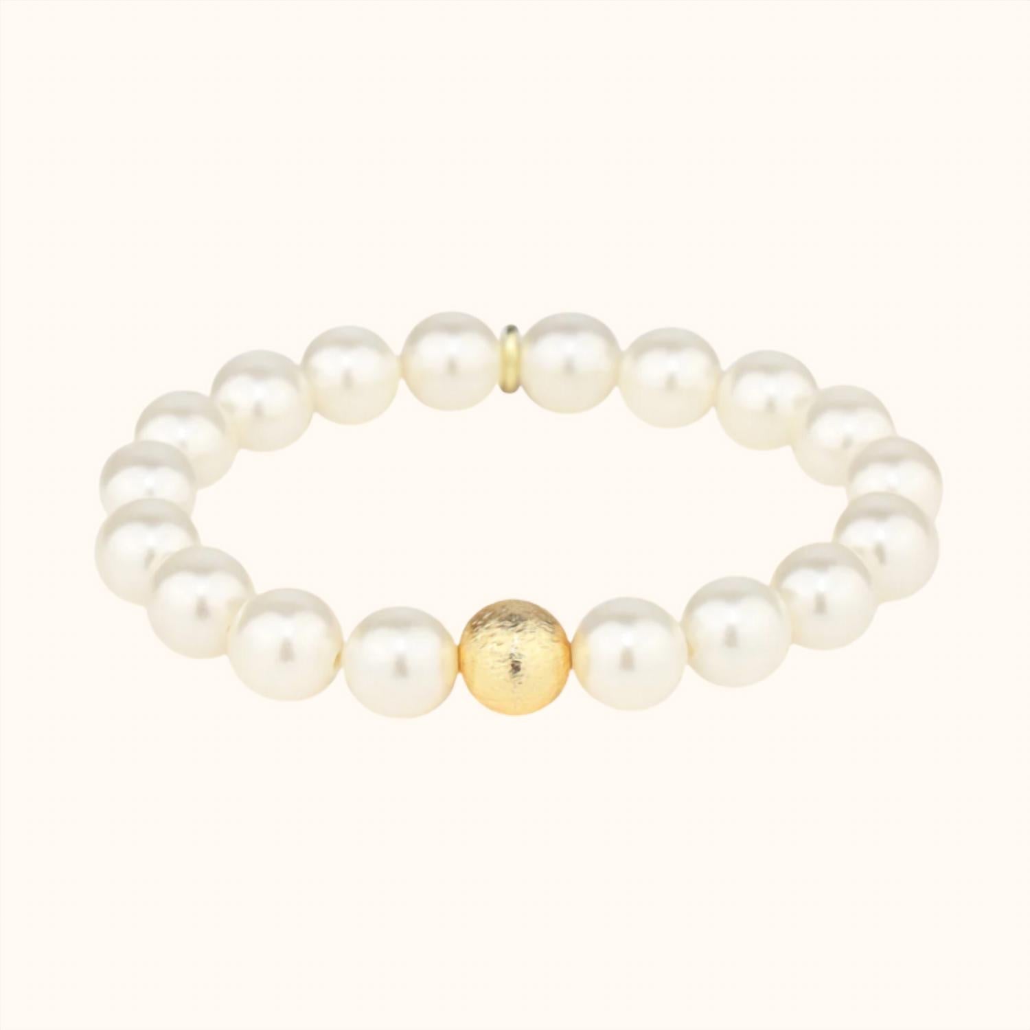 This bracelet will be your favorite go-to piece of the season. Experience the timeless elegance of the Women's Mala Beaded Bracelet by BuDhaGirl, crafted with lustrous 10mm snowy-white pearls and adorned with a brushed gold marker bead. This exquisite bracelet has its origins in South Asia, where Malas are traditionally used in prayer and meditation, enhancing focus through the tactile, repetitive movement across the beads. Handcrafted in the US, it encapsulates the essence of Mindful Glamour® with each bead symbolizing a mantra or prayer. This one-size bracelet is a versatile accessory for any wardrobe.