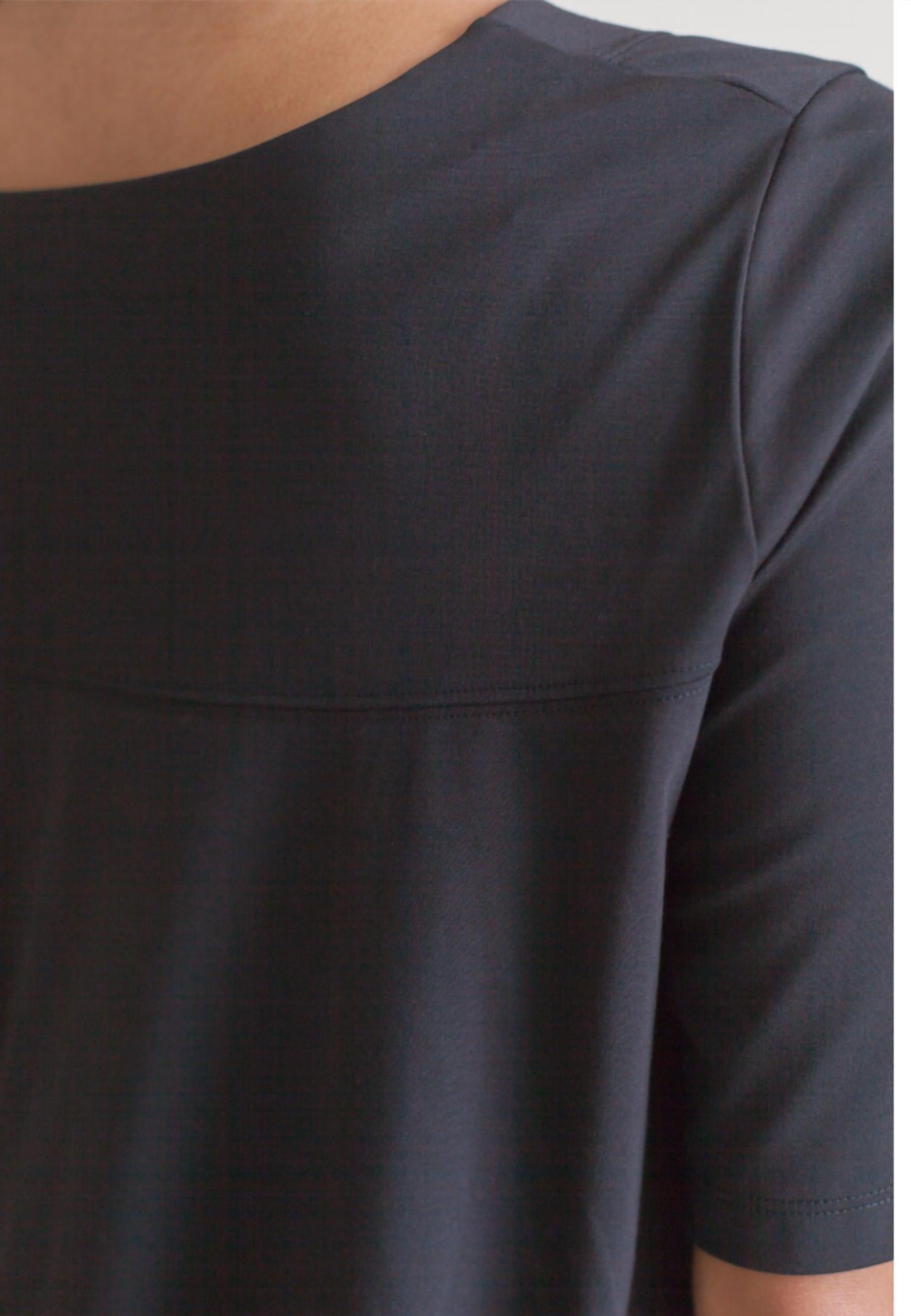 Look no further, you just found your perfect tee! Introducing the Buki Ginza Tee in classic black, a perfect blend of style and practicality for modern women. Crafted from a tech fabric composed of 44% Supima Cotton and 56% Micro Polyester, this tee offers engineered moisture management and wrinkle resistance. Designed with a ballet neckline and elbow-length sleeves, it features a flattering high-low silhouette and a shirt tail bottom. A pull-on closure ensures ease of wear, and care is simple with machine wash cold and lay flat to dry instructions, making it an excellent choice for workwear or travel occasions.