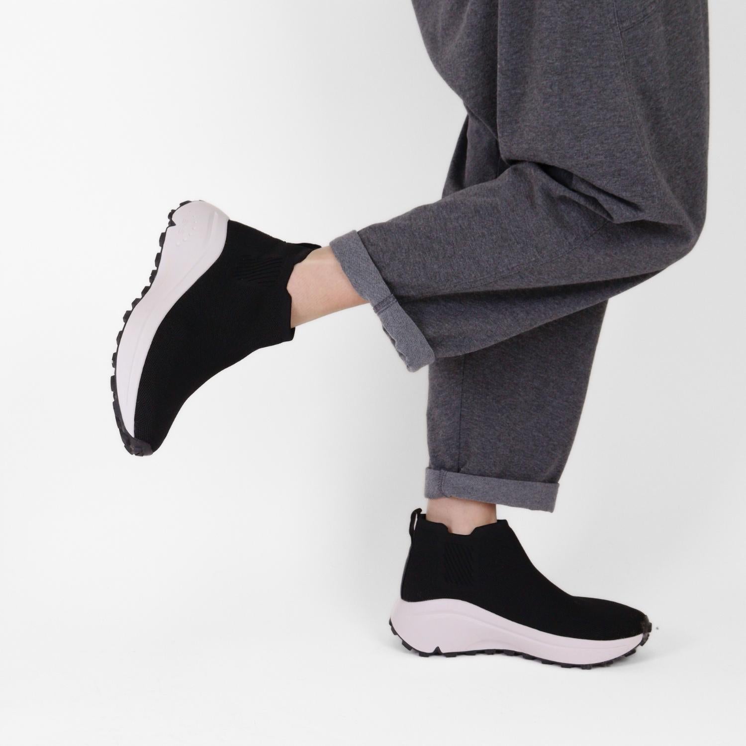 Experience the perfect blend of comfort and style with the Women's Bettina Nero Stretch Knit Sneakers by Bussola. Designed in sleek black, these sneakers offer the ease of a stretch-knit upper paired with a trendy outsole. Made with the coverage of a bootie, they are perfect for any athleisure ensemble. Ideal for on-the-go lifestyles, these sneakers extend the ultimate in supportive comfort.