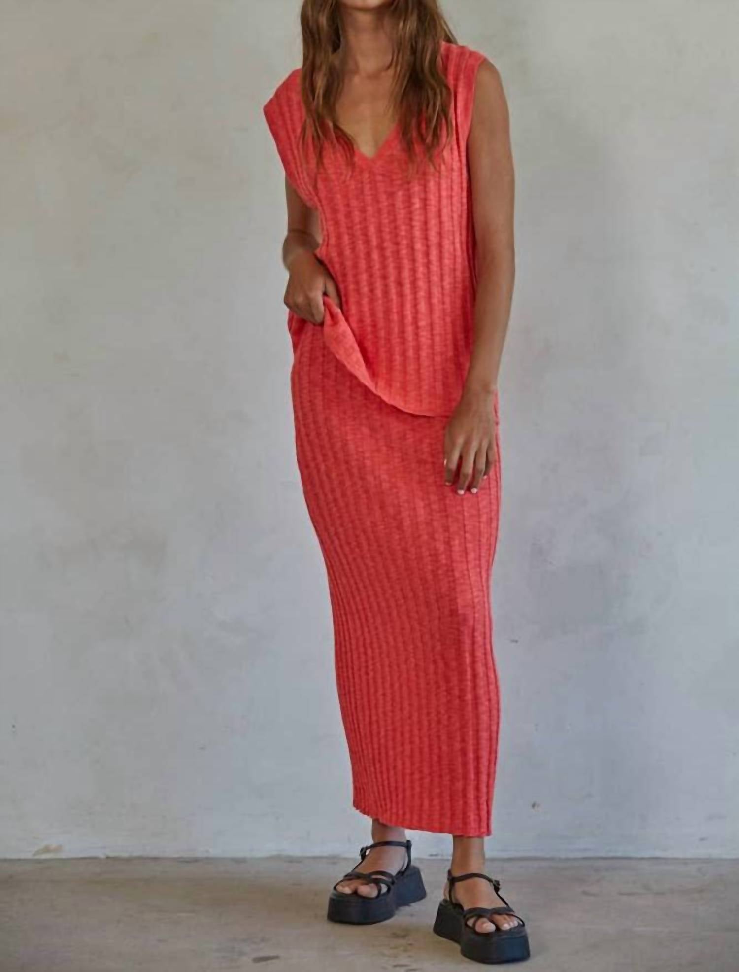 The midi length skirt is here to stay and we especially love this style. Meet the Isla Knit Midi Skirt by By Together, a chic addition in deep coral that captures the Y2K trend. Crafted from cotton, this women's skirt features a ribbed texture and an elastic waist for optimal comfort. With a convenient pull-on closure, it offers ease and style for evening events. Simply machine wash and tumble dry to keep this solid piece ready for spring and memorable Thanksgiving celebrations.