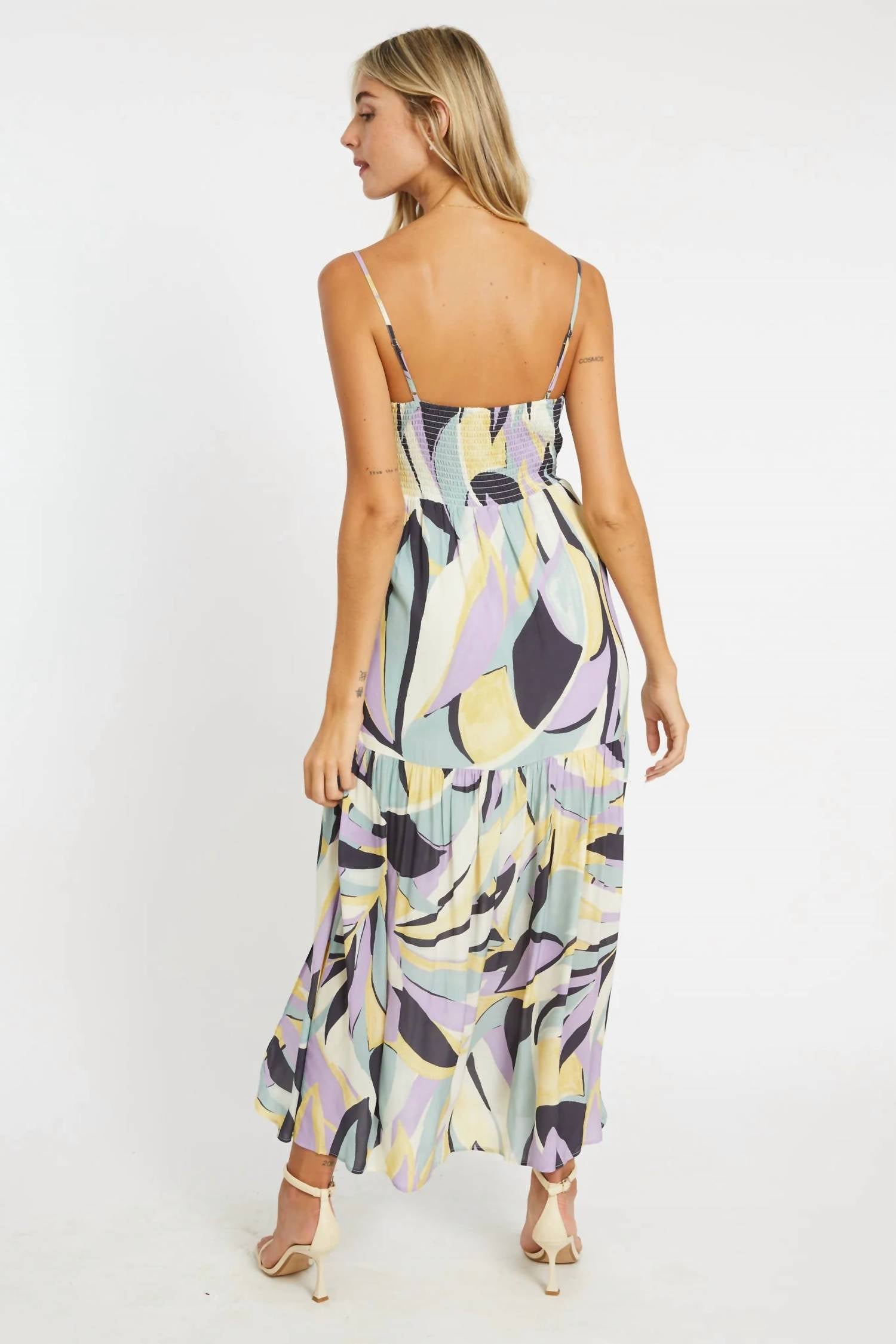 Discover effortless elegance with the Isla Floral Maxi Dress by CABALLERO, designed for boho-chic summer adventures. Featuring spaghetti straps and crafted from lightweight viscose, this maxi-length dress offers a fluid silhouette perfect for beach days. The pull-on closure complements its smocked back, ensuring comfort and ease. The Addo Floral print, in lively shades of lilac, sage, yellow, and charcoal, enhances its vibrant, patterned appeal.