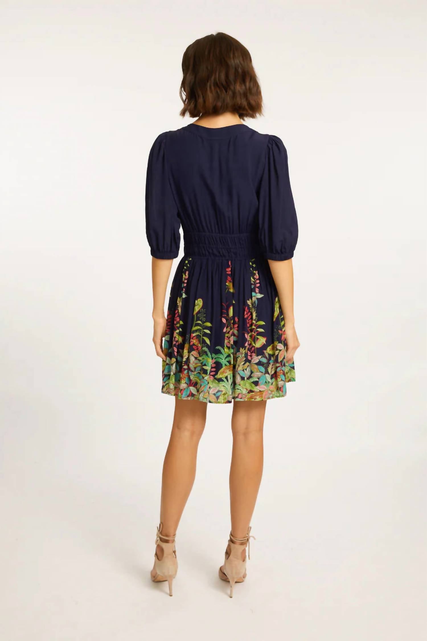 The kind of easy and flattering dress you'll be reaching for all season long. Introducing the Madeline Kruger Dress by Caballero, a perfect blend of style and comfort in a striking Midnight Kruger floral print. This mini dress features three-quarter sleeves elegantly finished with elastic cuffs, and a flattering V-neckline for added sophistication. Made from 100% viscose, its design includes a pull-on closure and a double elastic waist for easy all-day wear, while capturing a relaxed boho chic summer vibe. Please note it requires dry cleaning to maintain its quality, making it suitable for holiday parties or Easter celebrations.