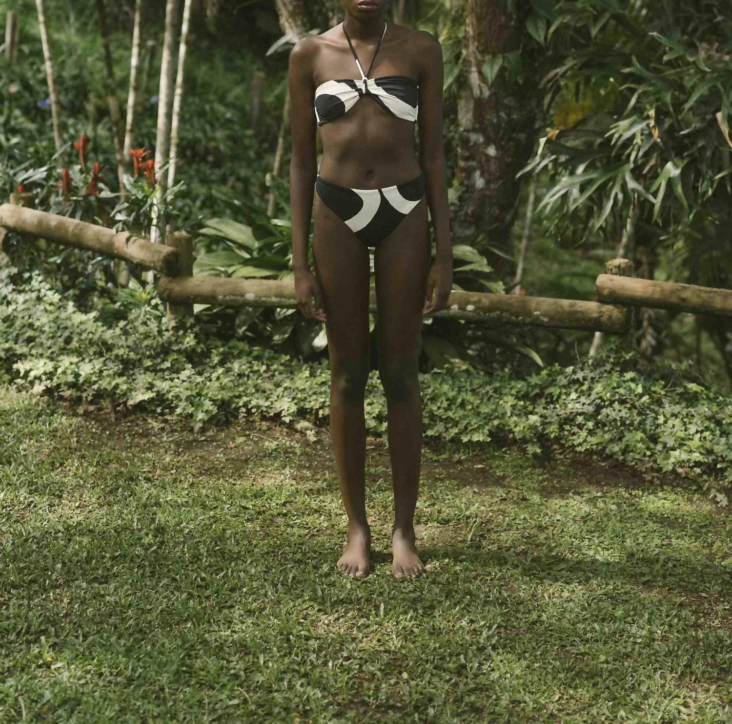 Introducing the Women's Fernanda Bikini Bottom by Cala de la Cruz, a chic swim bottom in Sandy Black/White designed with a high leg and low rise for cheeky coverage. Crafted in Colombia, it features a composition of 53% recycled polyamide, 29% polyamide, and 18% elastane, offering a perfect blend of comfort and style. Inspired by nature, its patterned design embodies a boho chic trend ideal for your next beach day. Care: Hand wash separately in cold water and lay flat to dry.
