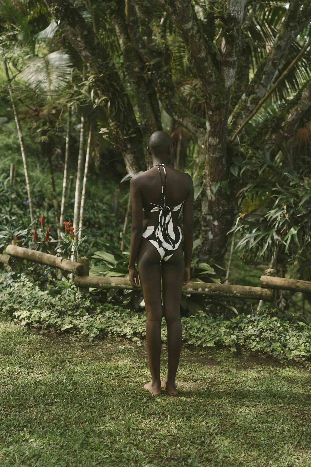 Dream of your next beach getaway in this cute little number. Pair with strappy sandals, a floppy hat, and an oversized tote to complete the perfect vacation look. Introducing the Women's Fernanda Bikini Bottom by Cala de la Cruz, a chic swim bottom in Sandy Black/White designed with a high leg and low rise for cheeky coverage. Crafted in Colombia, it features a composition of 53% recycled polyamide, 29% polyamide, and 18% elastane, offering a perfect blend of comfort and style. Inspired by nature, its patterned design embodies a boho chic trend ideal for your next beach day. Care: Hand wash separately in cold water and lay flat to dry.